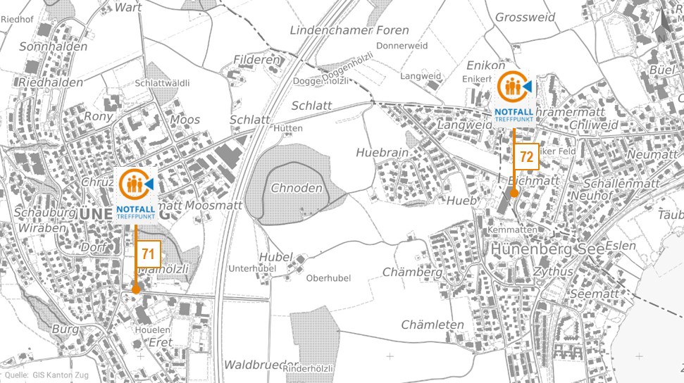 Die Notfalltreffpunkte sind im Ereignisfall täglich während 24 Stunden in Betrieb.