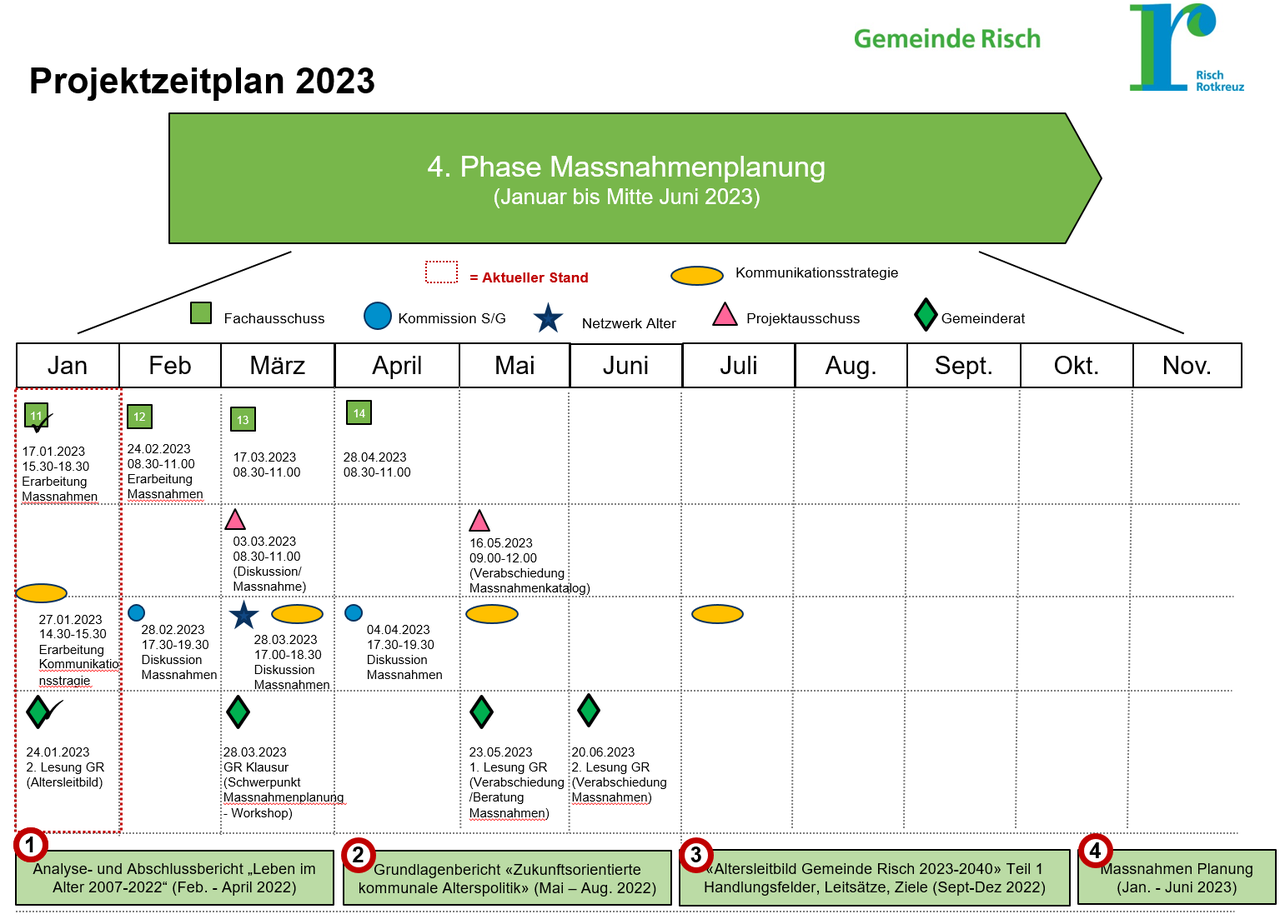 | Ausarbeitung von Massnahmen entlang der Projektergebnisse im «Altersleitbild 2023-2040» | Januar bis Mai 2023 |
