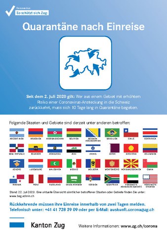 «So schützt sich Zug»: Einreise aus Risikogebieten melden, Hygieneregeln beachten