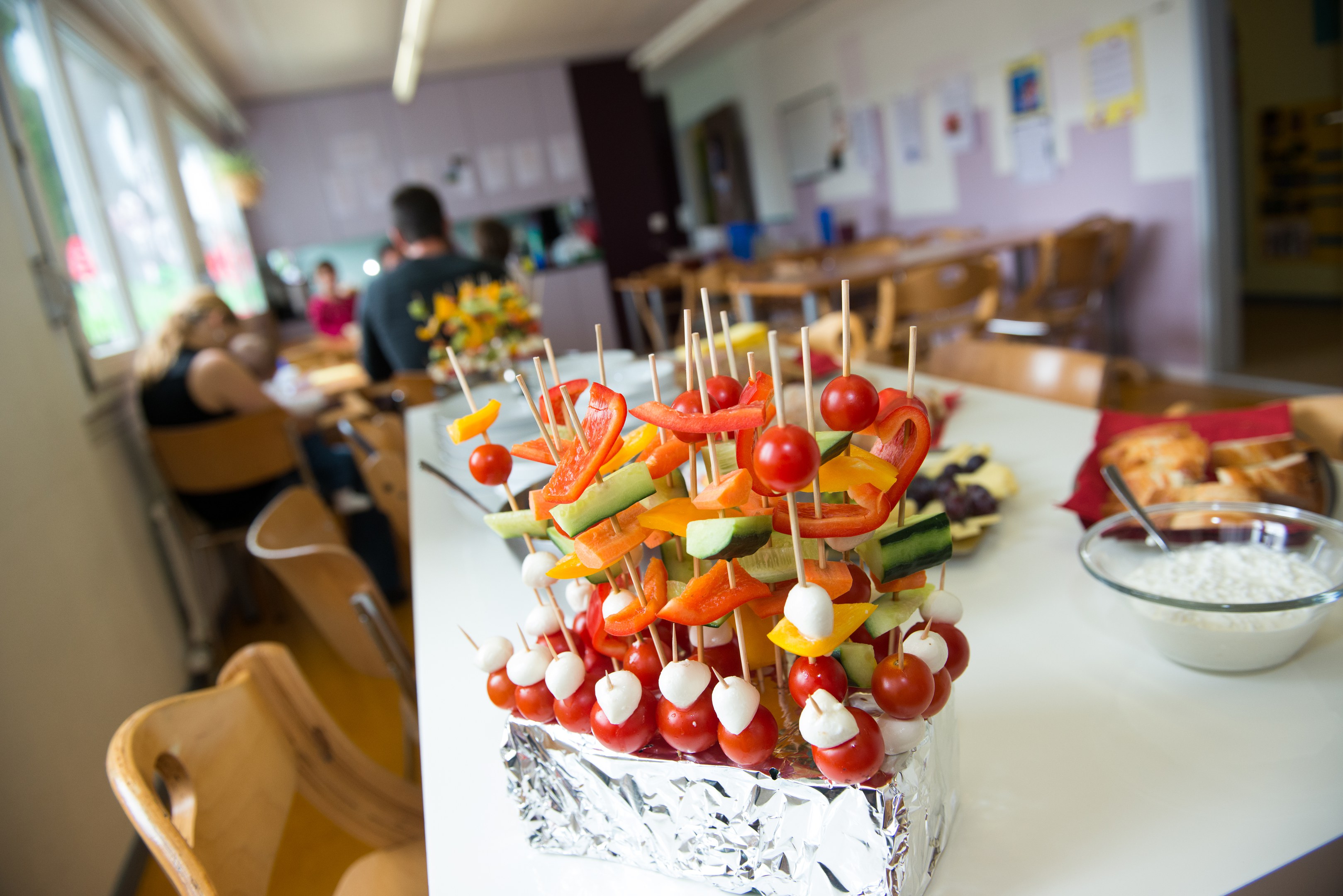 Eine weitere wichtige Grundlage für das Wohlbefinden und die Ausgeglichenheit unserer Kinder bildet eine ausgewogene und gesunde Ernährung. In unserer KiTa werden alle Mahlzeiten täglich frisch zubereitet. Durch die Teilnahme am Projekt "Schnitz und drunder" entwickelten wir unser Verpflegungsangebot weiter. Der Einbezug der verschiedenen kulturellen Hintergründe ist für uns unter anderem ein wichtiger Aspekt.