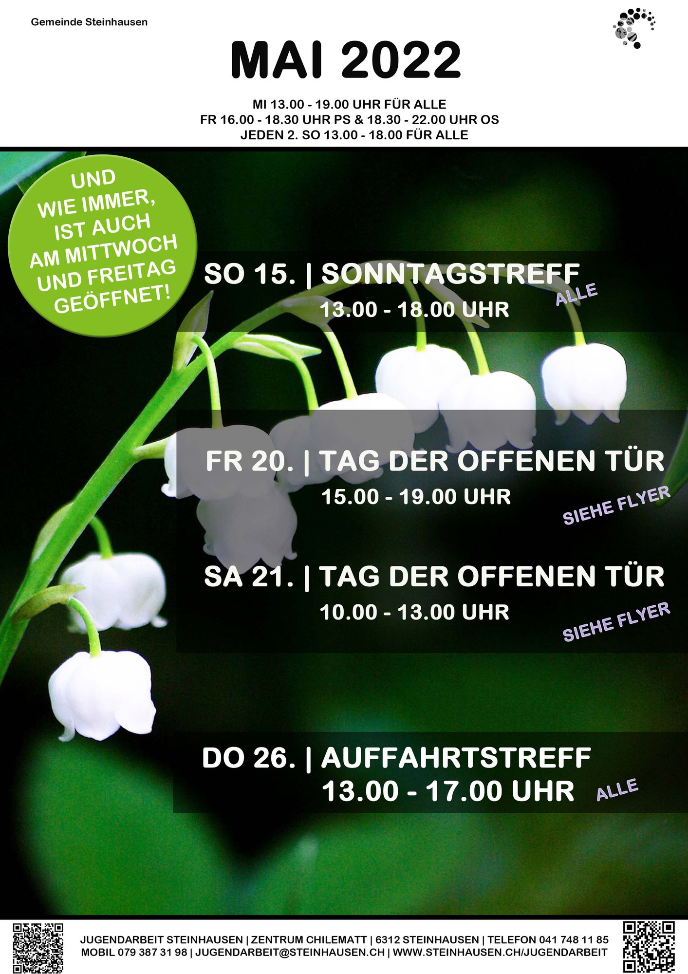 04.05.2022Monatsprogramm MaiDas neue Programm im Monat Maihttps://publisher-zgch-test.webcloud7.ch/izug/platform/behoerden/gemeinden/steinhausen/jugendarbeit/infos/aktuelles/monatsprogramm-mai-3https://publisher-zgch-test.webcloud7.ch/izug/platform/logo.png