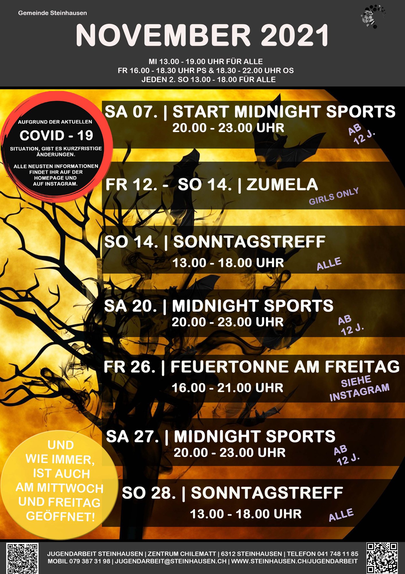 Das Monatsprogramm der Jugendarbeit Steinhausen im November.