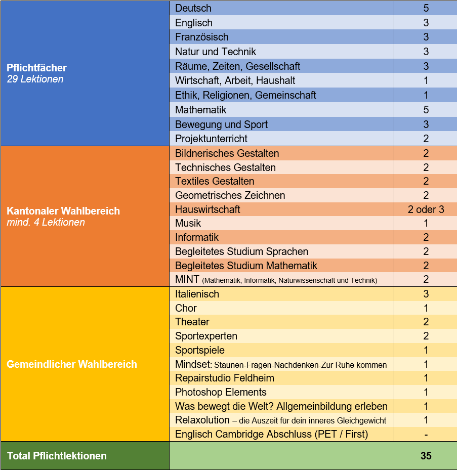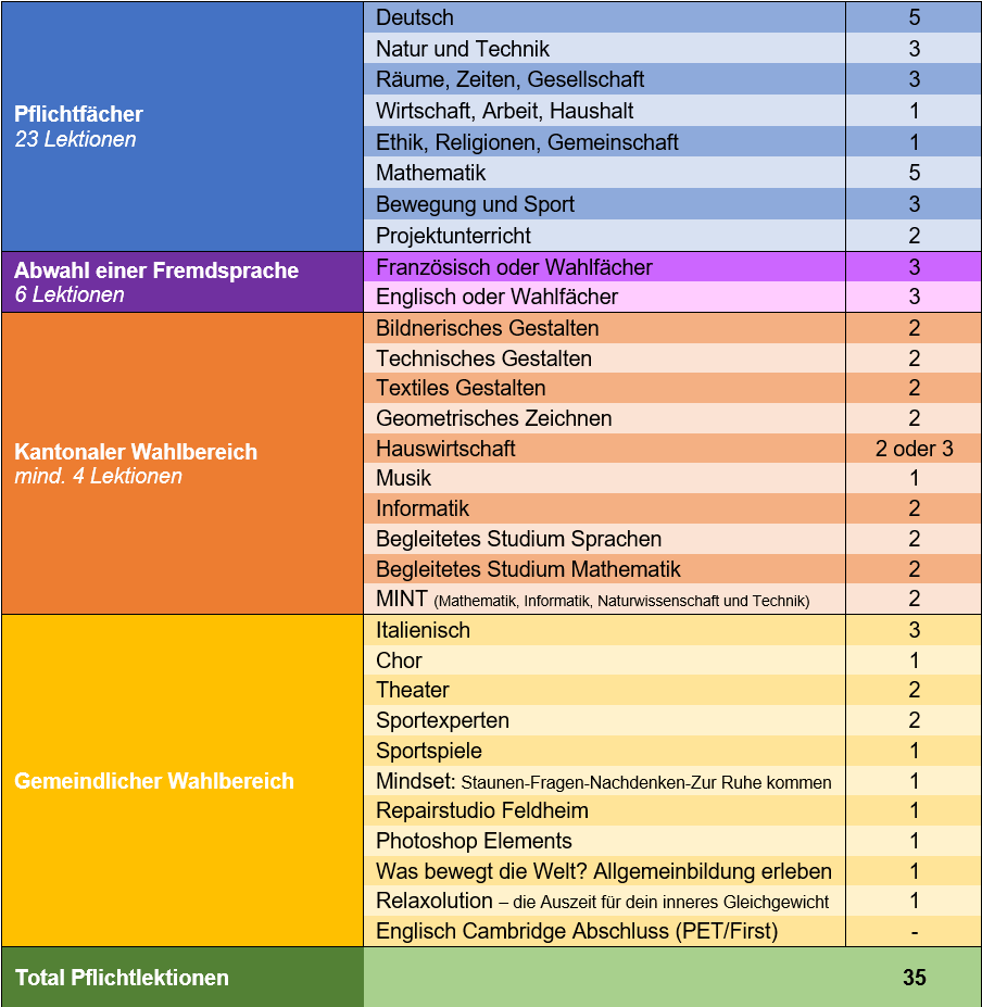 Die Unterrichtseinheit beträgt 3 Lektionen pro Woche. Werden auf dem Anmeldeformular 3 Lektionen gewählt, so findet der Unterricht wöchentlich während dem ganzen Schuljahr statt. Werden 2 Lektionen gewählt, so findet der Unterricht wöchentlich (à 3 Lektionen) ab Start Schuljahr bis zu den Frühlingsferien statt. Das Wahlfach kann eventuell am Montag oder Donnerstag ab 15.15 Uhr stattfinden.