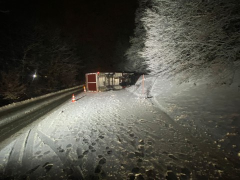 274 / Kanton Zug: Lieferwagen in Seitenlage - Lastwagen auf Kandelaber