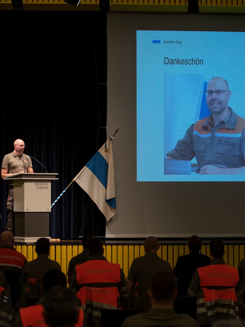 Oberstleutnant Oliver Füllemann leitete die Zivilschutzorganisation mit Herzblut. Die Sicherheitsdirektion dankt dem abtretenden Oliver Füllemann für seine Verdienste als Zivilschutzkommandant in den vergangenen sechs Jahren. Dank seinem grossen Engagement für den Zivilschutz und dessen Angehörigen etablierte sich die Zivilschutzorganisation als verlässliche Partnerin des Bevölkerungsschutzes. Er bewährte sich unter anderem beim Einsatz des Eidgenössischen Schwing- und Älplerfests 2019 in Zug, bei der Sanierung und Erweiterung des Ausbildungszentrums Schönau in Cham, bei der Umsetzung des neuen Bevölkerungs- und Zivilschutzgesetzes und bei den Unterstützungseinsätzen während der Corona-Pandemie. Die Sicherheitsdirektion wünscht Oliver Füllemann auf seinem weiteren Berufsweg viel Erfolg.