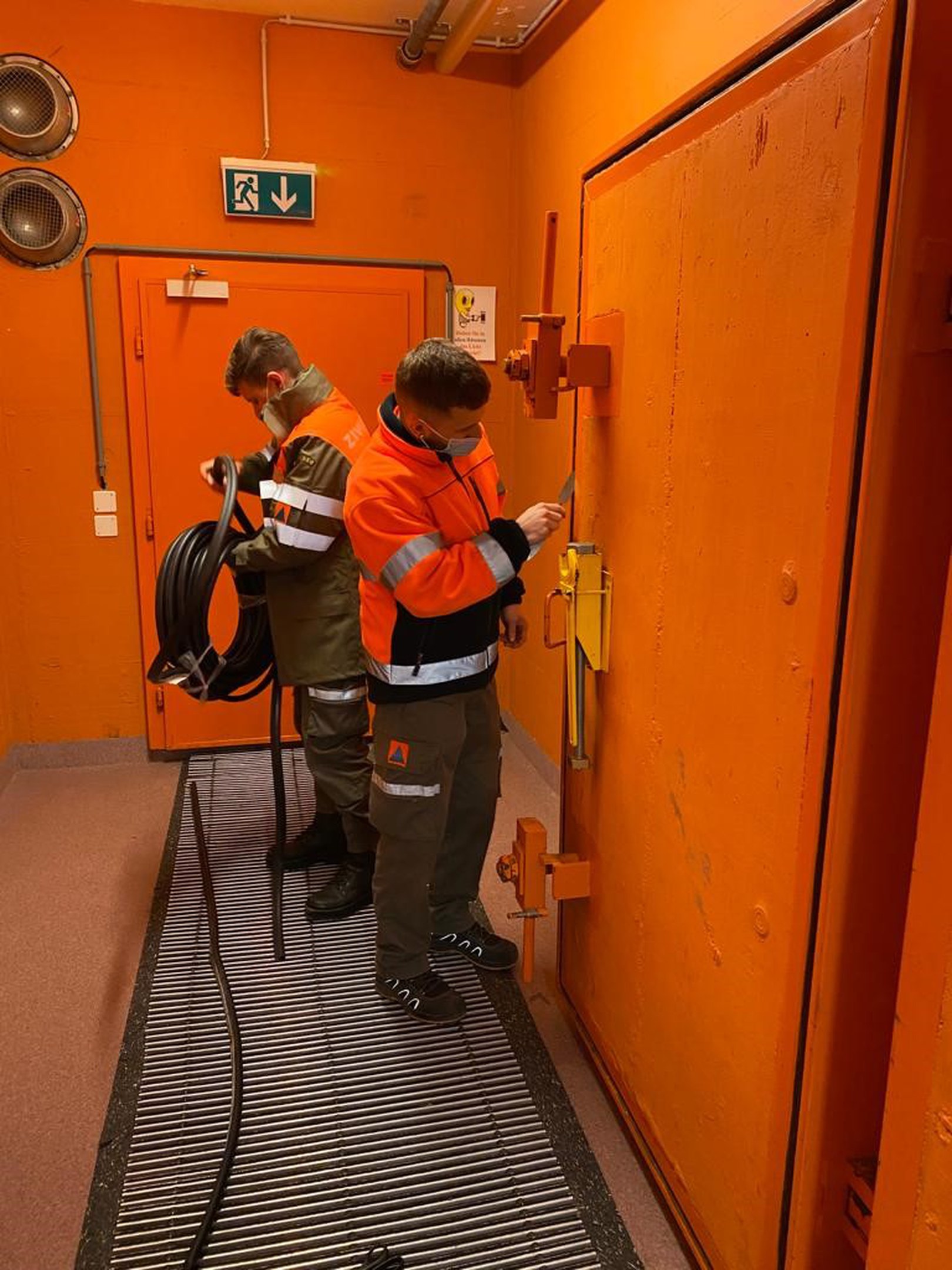 Ab dem Donnerstag der ersten Woche wurde das Klassenzimmer in eine Zivilschutzanlage verlegt. In dieser Phase der Ausbildung wurden die zukünftigen Infrastrukturwarte auf ihre Tätigkeit in Zivilschutzbauten vorbereitet. Sämtliche Betriebsarten der Lüftungsanlage, Wasserversorgung, Abwasserentsorgung und der Notstromversorgung werden detailliert geschult. Zum Abschluss der Ausbildung wurde auch für diesen Fachteil eine Erfolgskontrolle durchgeführt.
