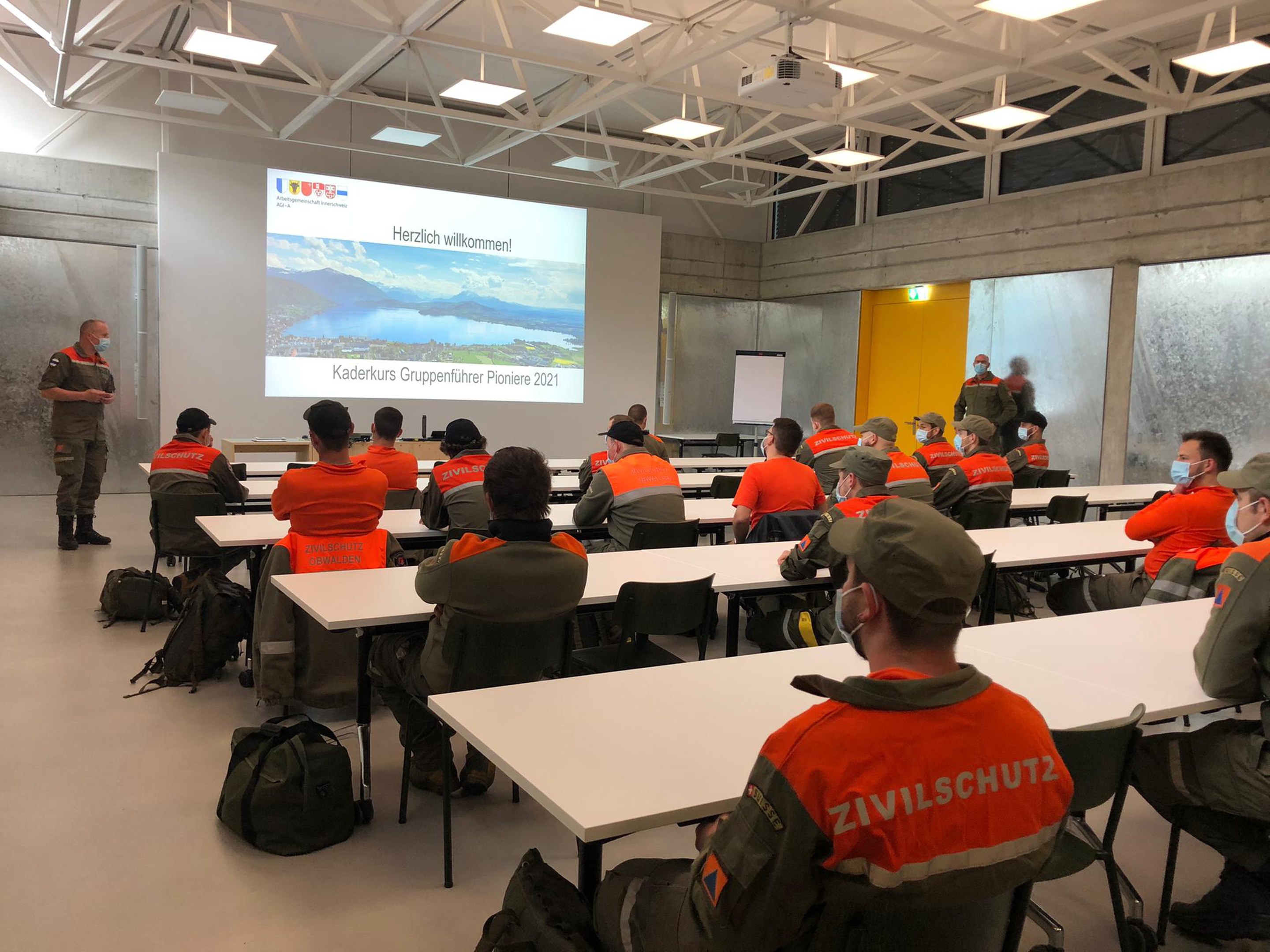 Vom 17. bis 21. Mai 2021 fand im Ausbildungszentrum Schönau in Cham der Zivilschutz-Kaderkurs Gruppenführer Pionier statt. Unter der Leitung von hauptamtlichen Zivilschutzinstruktoren lernten die Kursteilnehmer die Grundsätze der Führung kennen. Sie lernten einen Wiederholungskurs vorzubereiten, eine Ausbildungslektion auf Stufe Gruppe zu halten und mittels Entschlussfassungsübungen eine Pioniergruppe einsatzorientiert zu führen.