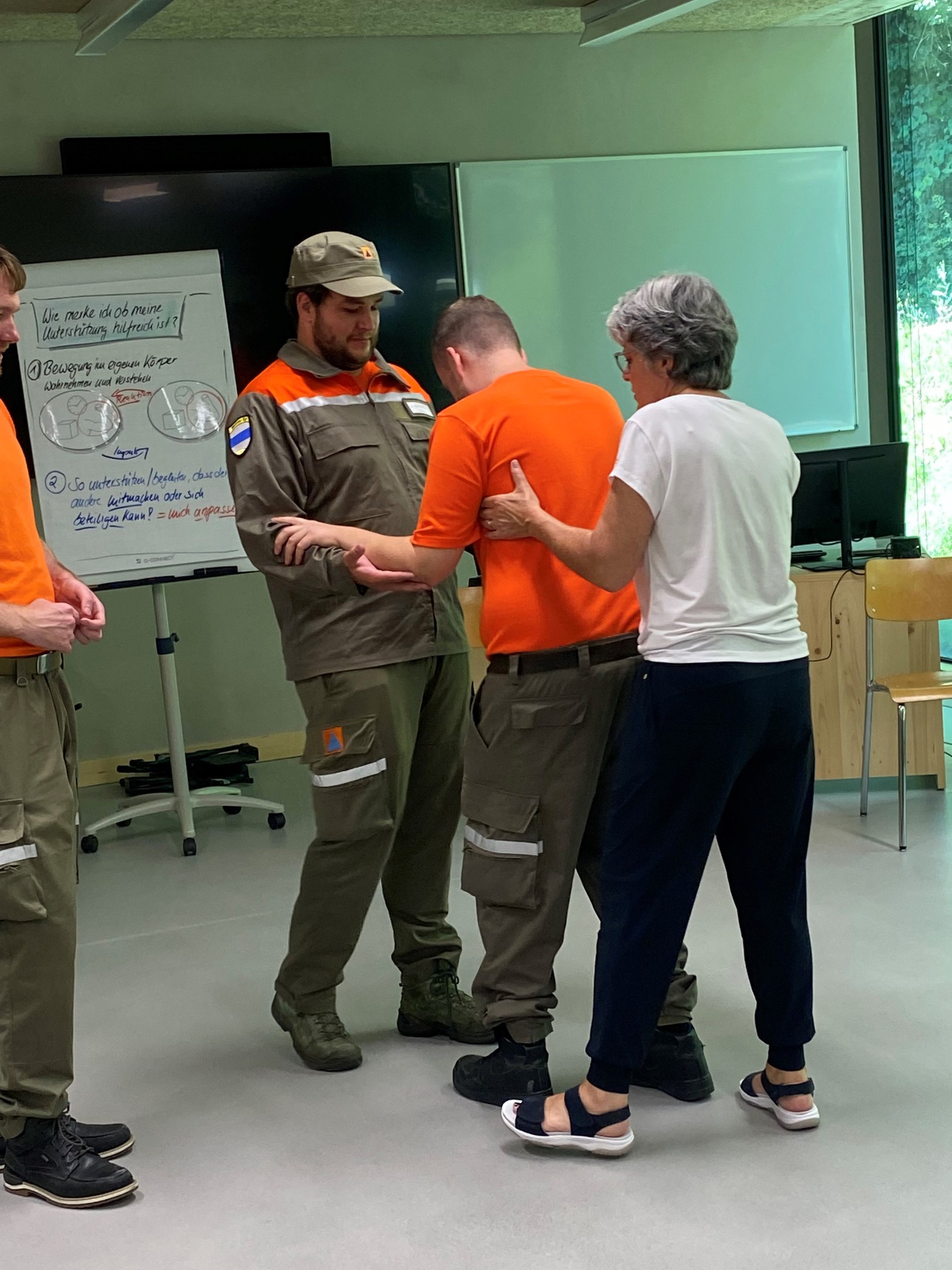 Am dritten und abschliessenden WK-Tag hielt Benno Blattmann, Kommandant ZSO ZG, ein Referat zum Thema Konfliktmanagement. Dieses Thema wurde anschliessend durch praktische Übungen vertieft. Zusätzlich wurden die Themen Kinästhetik, Notfalltreffpunkte im Kanton Zug und Brandbekämpfung von Entstehungsbränden ausgebildet.