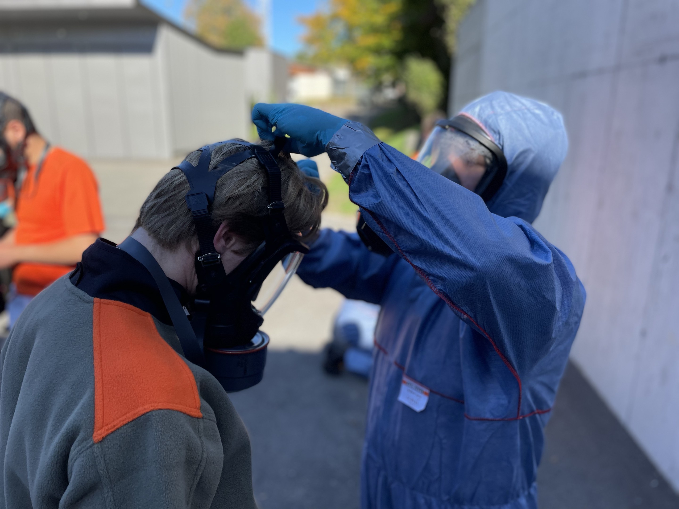 An den beiden KVK-Vormittagen vom 3. und 4. Oktober 2022 wurden die Kaderangehörigen der Betreuungskompanie 2 in Sachen ABC-Schutz, Brandbekämpfung von Entstehungsbränden sowie im Sanitätsdienst - unter anderem mit dem Schwerpunkt auf BLS/AED - geschult.