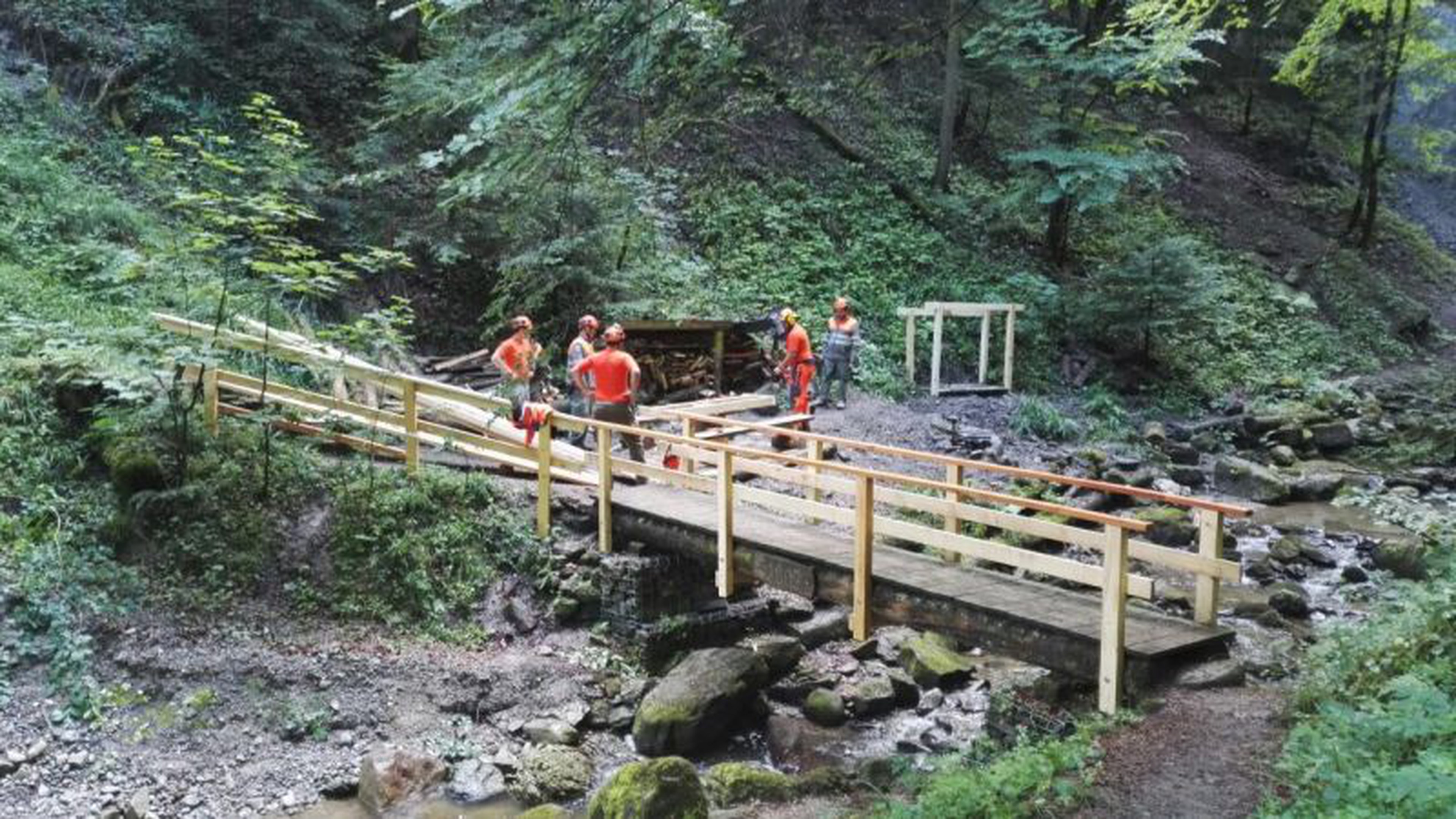 Nebst den Arbeiten in Bächen konnte auch ein bis dahin gesperrter Wanderweg nach dem WK wieder geöffnet werden. Dieser Weg war durch einen Hangrutsch abschnittsweise verschüttet gewesen und konnte durch die Pioniere wieder freigeräumt und neu aufgebaut werden.