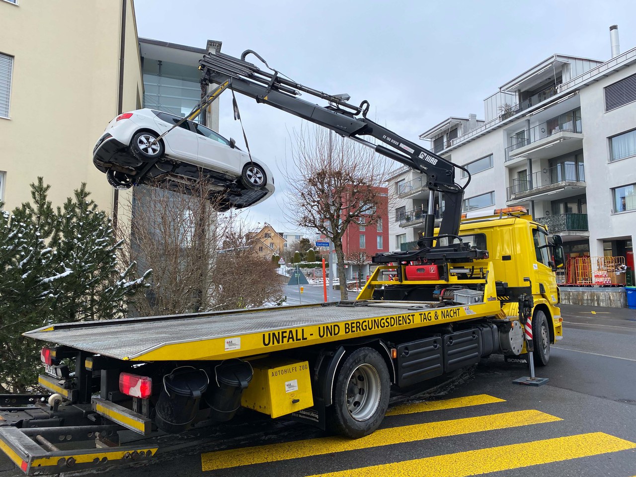 Das Unfallfahrzeug musste mit einem Kran geborgen und durch das Abschleppunternehmen abtransportiert werden.
