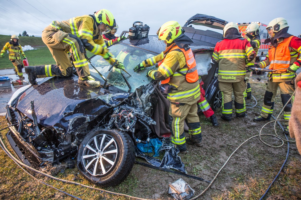 Am Montag (22. Januar 2018), nach 16.00 Uhr, hat sich auf der Edlibacherstrasse in Menzingen eine Frontalkollision ereignet. Aus noch ungeklärten Gründen geriet ein Autolenker, der Richtung Edlibach fuhr, plötzlich auf die Gegenfahrbahn. Dort kollidierte er mit einem korrekt entgegenkommenden Lastwagen. Der 23-jährige Lenker wurde im Auto eingeklemmt und musste von Einsatzkräften der Stützpunktfeuerwehr Zug aus dem Fahrzeug geborgen werden. Der Rettungsdienst Zug betreute den erheblich verletzten Mann und überführte ihn ins Spital.