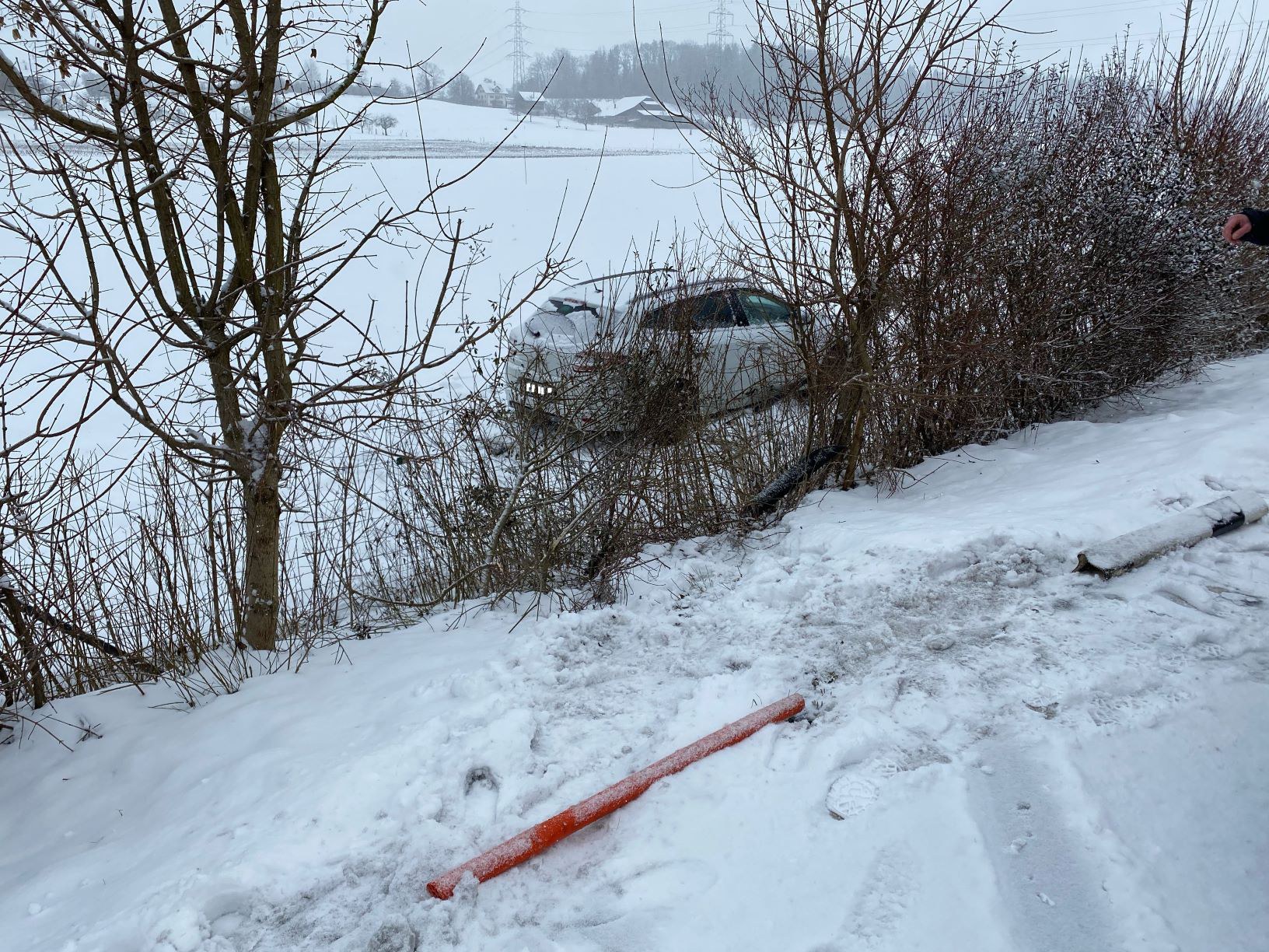 In Menzingen verlor ein 60-jähriger Autolenker, kurz nach 15:30 Uhr, auf der Kantonsstrasse von Ägeri Richtung Zug die Herrschaft über sein Fahrzeug. Weil sein Heck ausbrach, geriet er auf die Gegenfahrbahn, wo er mit einem korrekt fahrenden Auto seitlich-frontal zusammenprallte. Dieses stürzte in der Folge die Böschung hinunter und musste von einem Kran geborgen werden. Die Autolenkerin als auch der Unfallverursacher blieben unverletzt. Sie wurden vom Rettungsdienst an der Unfallstelle medizinisch begutachtet. An den beiden Fahrzeugen entstand Sachschaden in der Höhe von rund 35'000 Franken. Die beiden Hinterreifen am Verursacherfahrzeug wiesen zu wenig Profil auf.