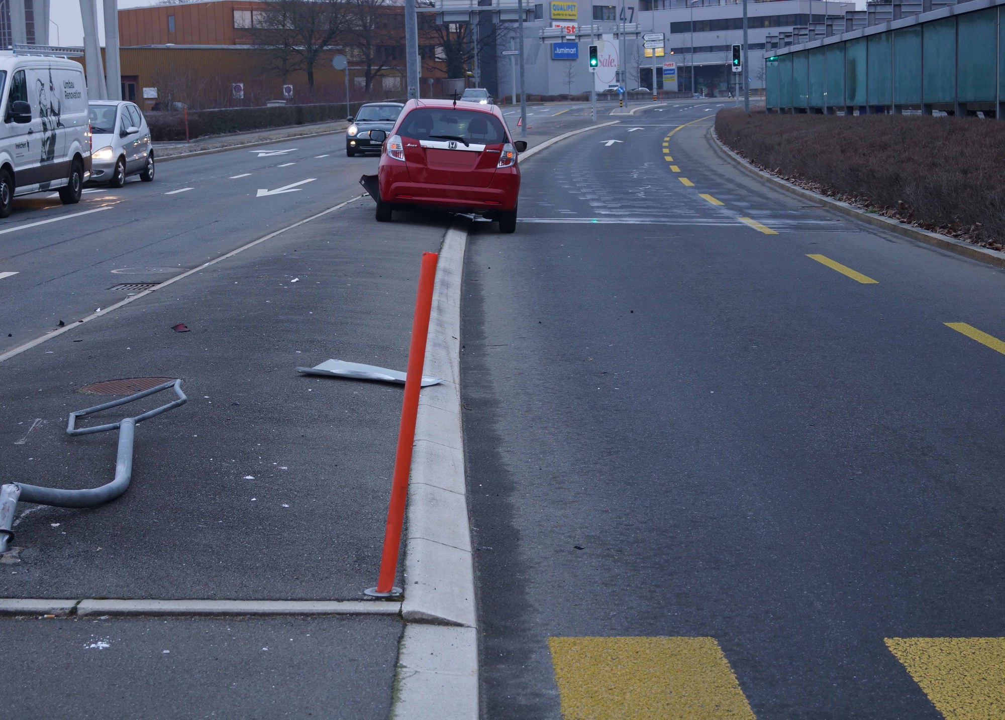 Steinhausen: Verkehrssignal umgefahren und in Kandelaber geprallt