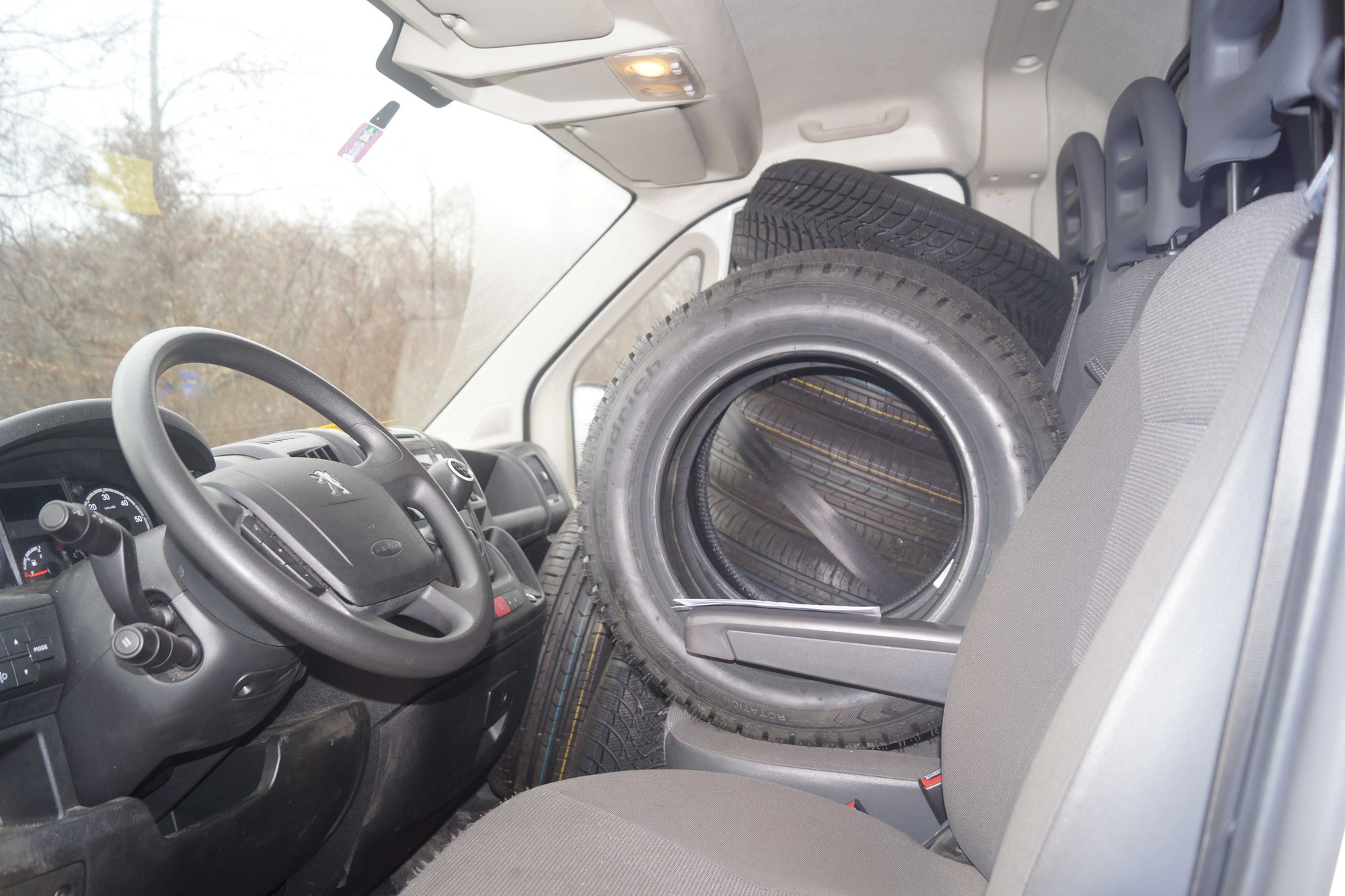 Ein Lieferwagenlenker hat in seiner Fahrerkabine mehrere Reifen transportiert. Er wurde angehalten und verzeigt.