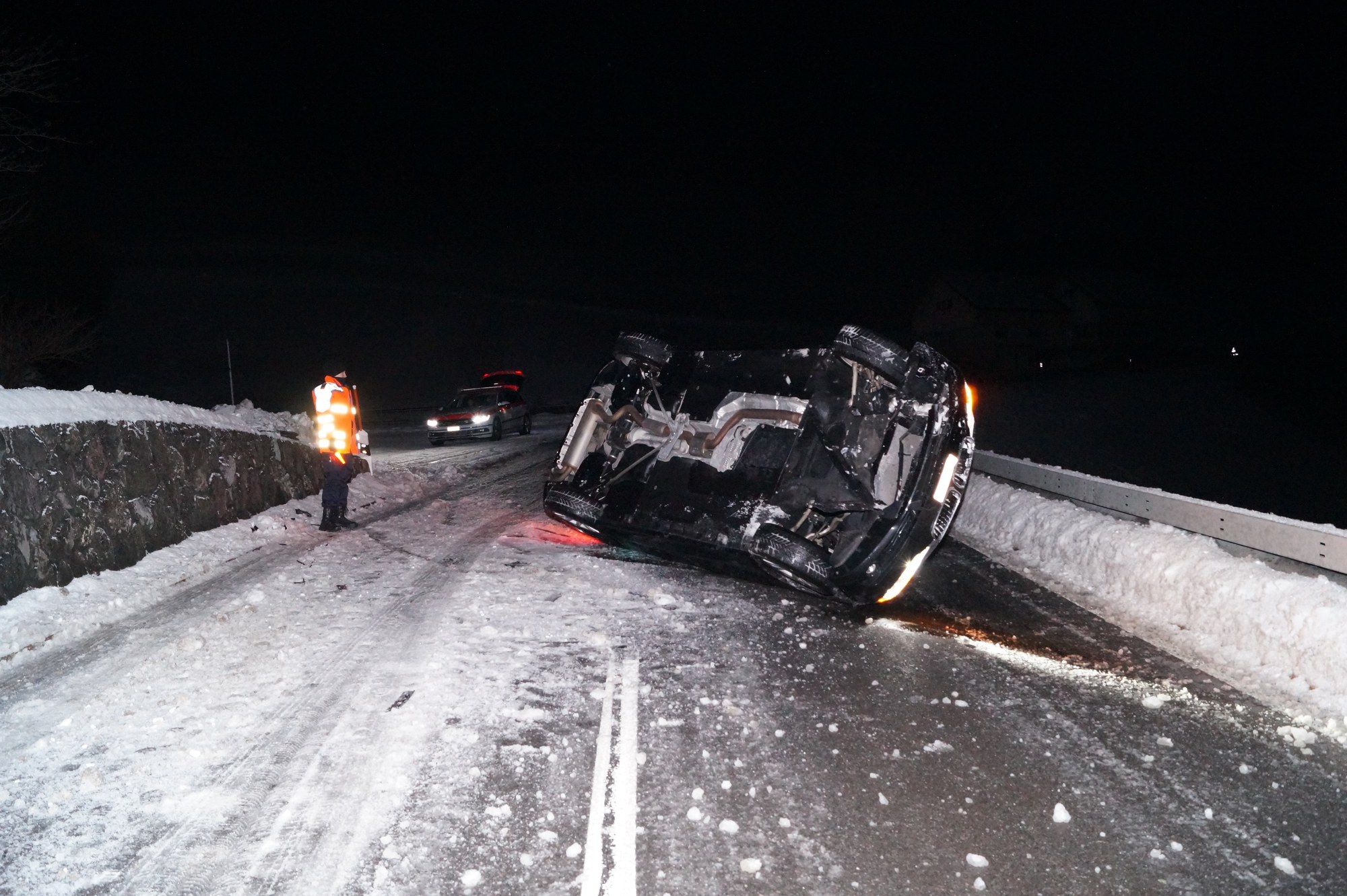In der Nacht zum Freitag (18. Januar 2019), kurz nach Mitternacht, fuhr eine Autolenkerin von Menzingen Richtung Finstersee. Auf der verschneiten Fahrbahn verlor sie aufgrund Nichtanpassen der Geschwindigkeit an die Strassenverhältnisse die Beherrschung über ihr Fahrzeug. Dieses rutschte in einer Linkskurve nach rechts weg und geriet auf eine rund einen Meter hohe Stützmauer, worauf das Auto auf die linke Fahrzeugseite kippte. Die Junglenkerin konnte das Fahrzeug durch die Beifahrertüre selbstständig verlassen. Die 23-Jährige erlitt beim Unfall eine Schnittverletzung. Ihr Auto musste vom Abschleppdienst aufgeladen werden.