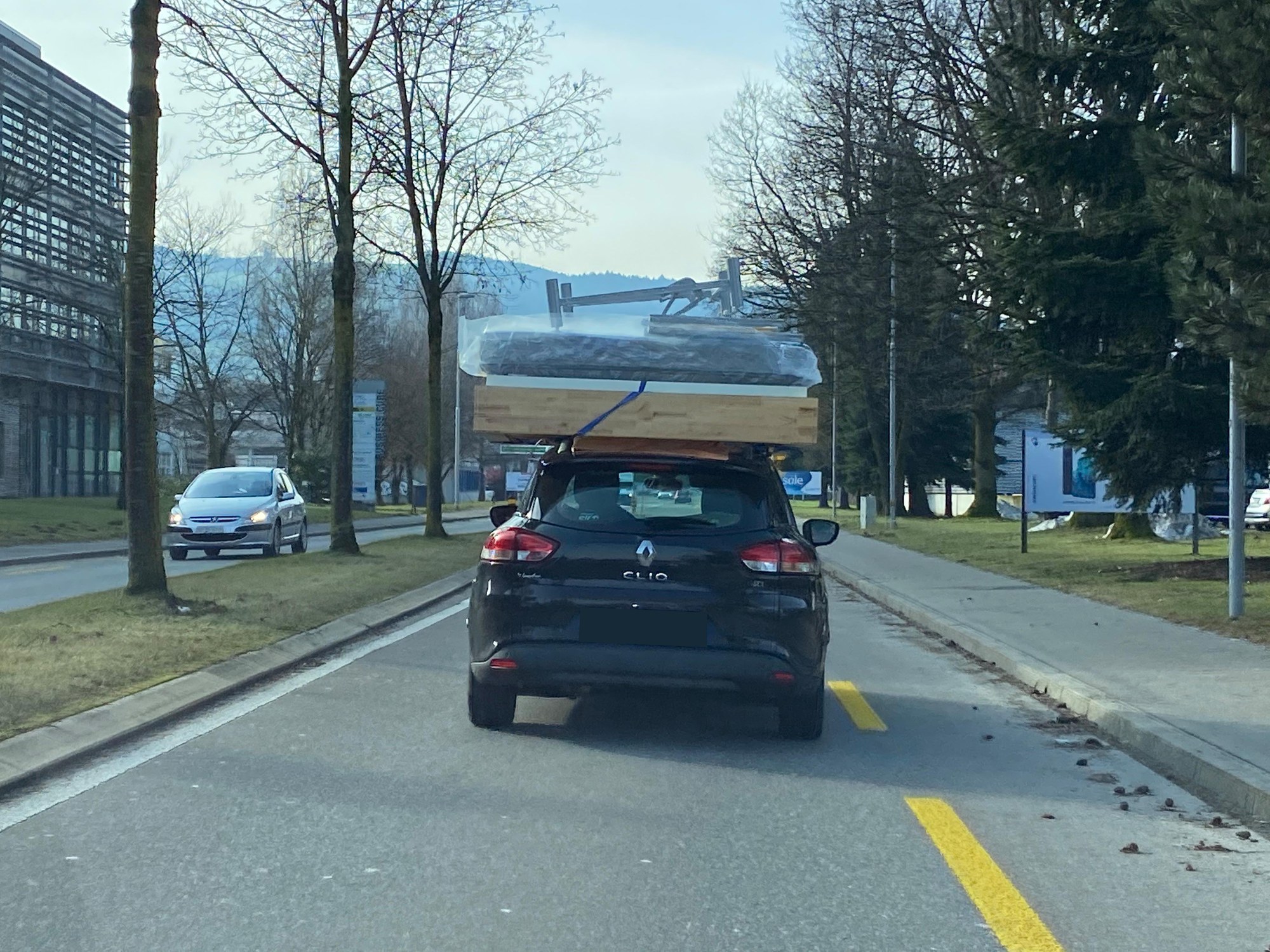 Am Freitagvormittag (5. Februar 2021) fiel einer Polizeipatrouille ein Auto auf, welches auf dem Dach ein komplettes Bett transportierte. Dieses war ungenügend gesichert und drohte während der Fahrt auf die Strasse zu fallen. Der fehlbare Lenker wurde gestoppt und wird verzeigt.