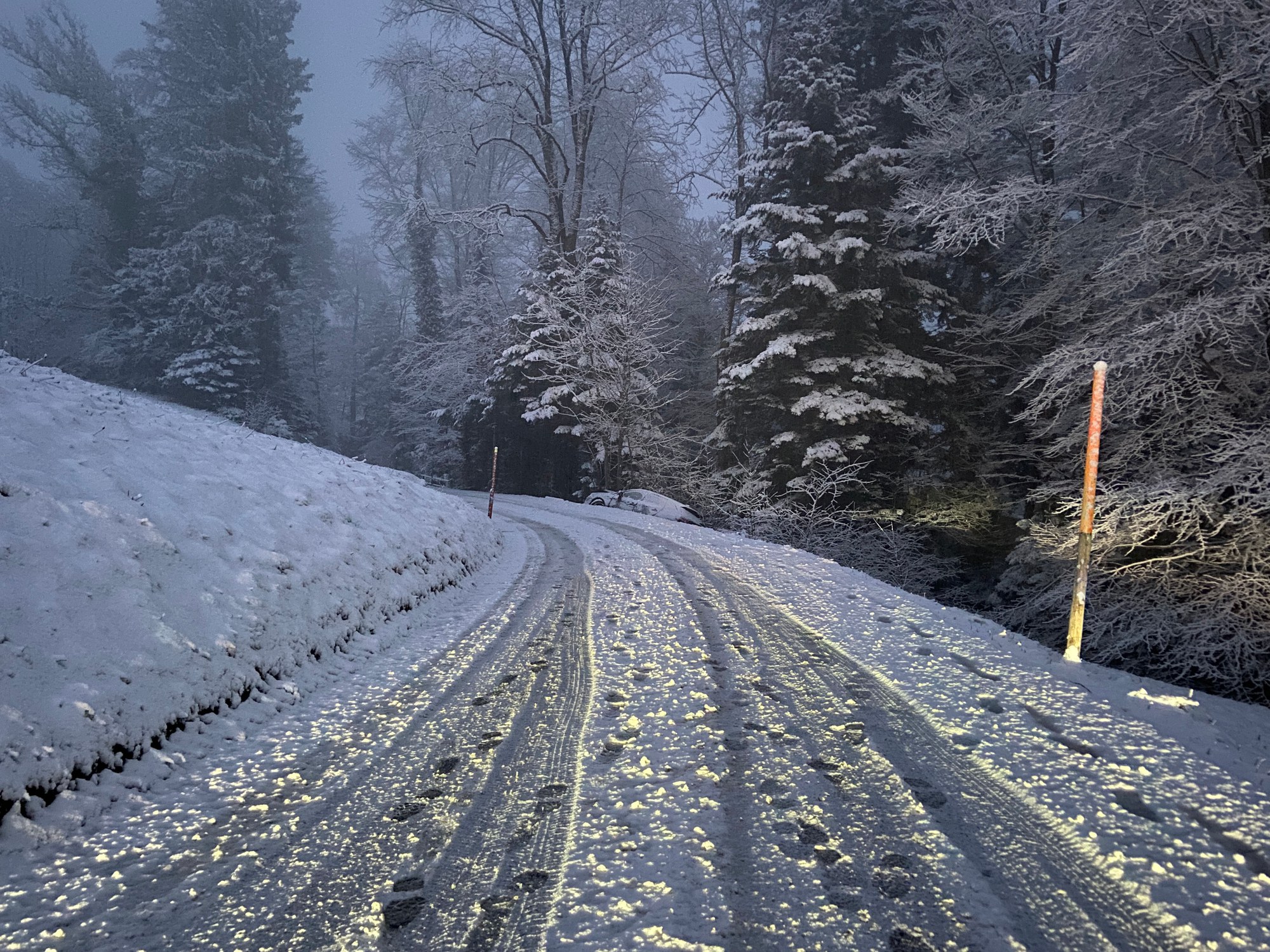 Oberägeri: Selbstunfall auf schneebedeckter Strasse