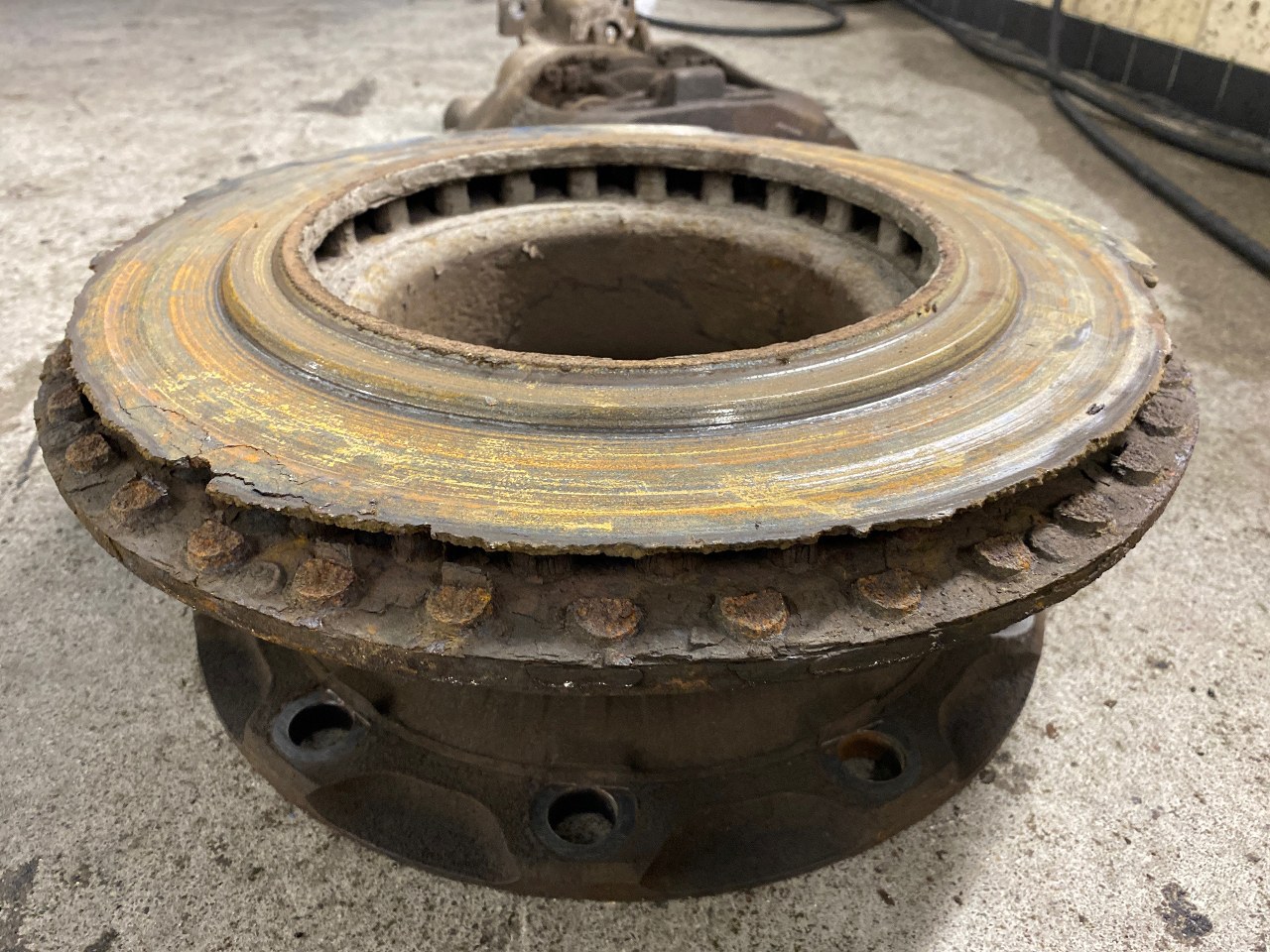 Beim Sattel-Sachentransportanhänger waren die Bremsen der dritten Achse in einem desolaten Zustand. So war die Bremsscheibe an mehreren Stellen ausgebrochen und die Bremsbacken waren so abgenutzt, dass keine Bremswirkung mehr vorhanden war.