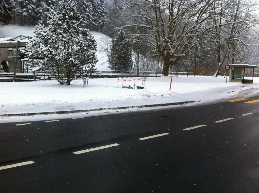 Der Schacht befindet sich in einer Wiese an der Zugerstrasse auf Höhe der Bushaltestelle Schmittli.
