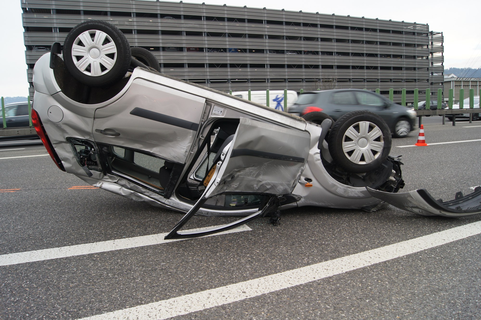 Rotkreuz: Auto auf der Autobahn auf dem Dach gelandet