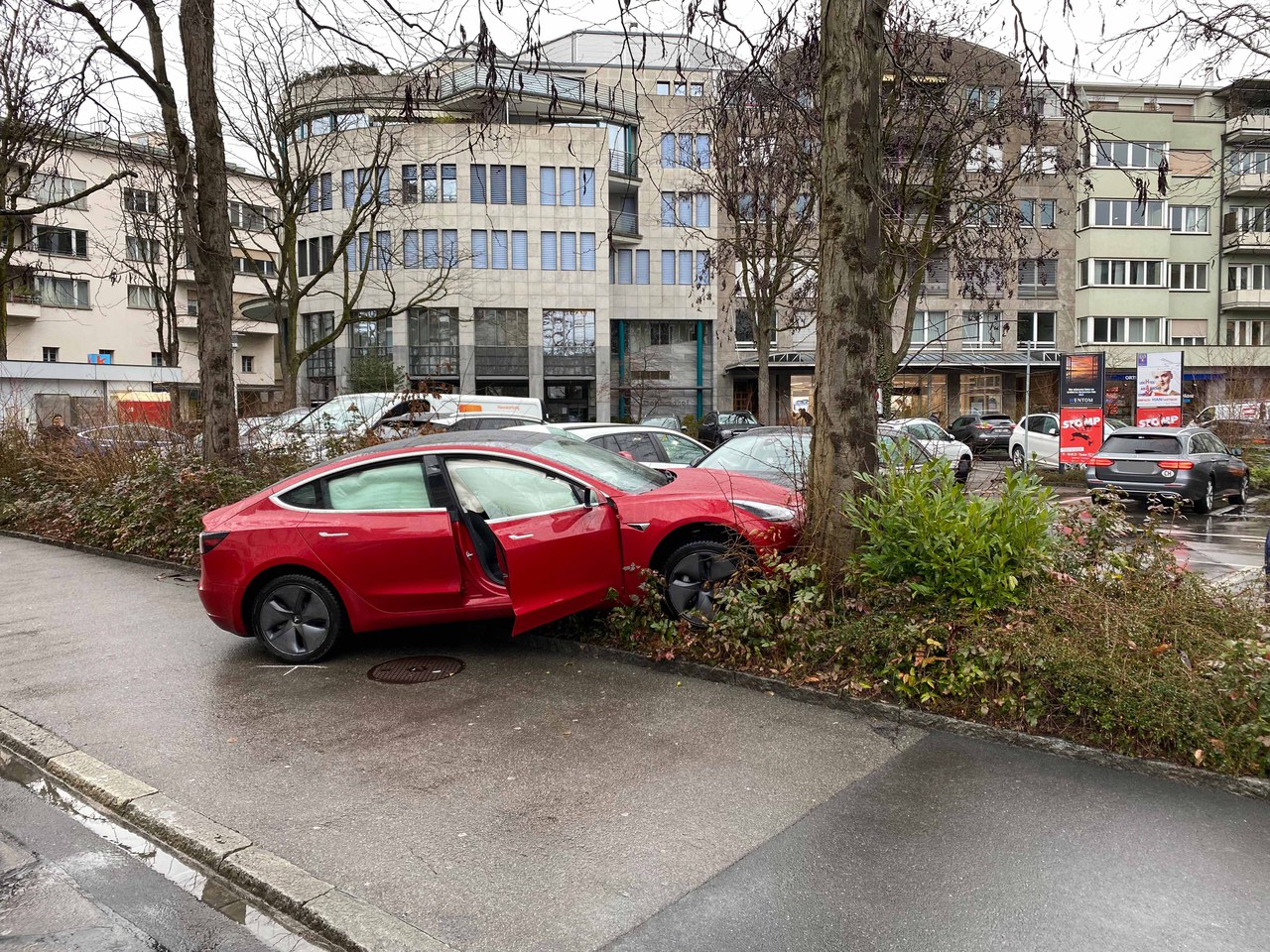 Zug: Aus dem Parkplatz - über die Strasse - zurück in einen Baum
