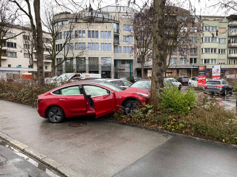 031 / Zug: Aus dem Parkplatz - über die Strasse - zurück in einen Baum