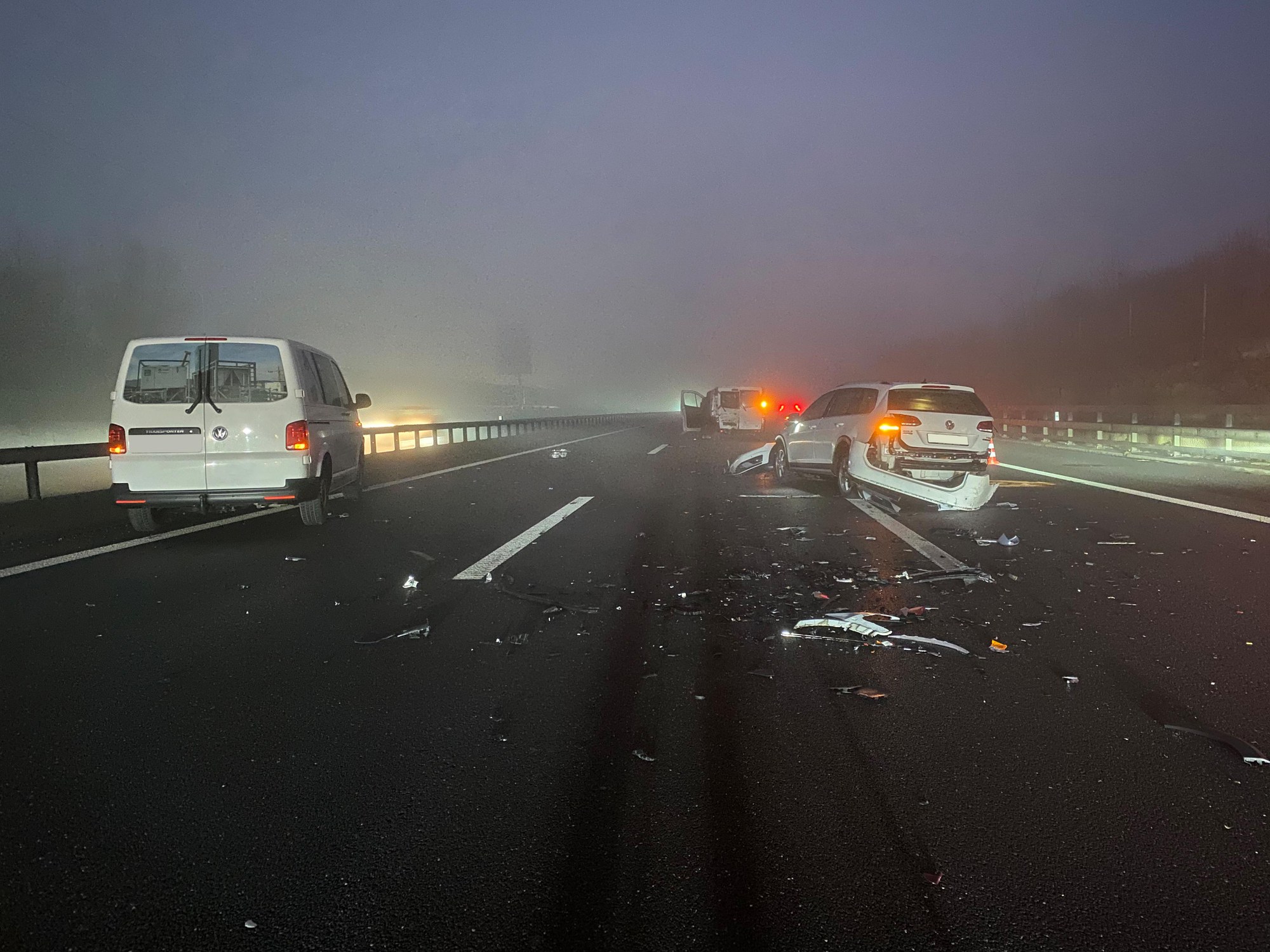 Wenige Minuten später kam es einige Hundert Meter weiter vorne zu einem zweiten Unfall. Aufgrund eines technischen Defekts blieb ein Lieferwagen auf der Fahrbahn stehen. Ein nachfolgender, 43-jähriger Autofahrer, realisierte dies zu spät und prallte mit hoher Geschwindigkeit in das Pannenfahrzeug. Der Lieferwagen wurde durch den Aufprall rund 30 Meter nach vorne geschoben. Ein dritter Fahrzeuglenker konnte ebenfalls nicht mehr rechtzeitig bremsen, prallte in den Kombi sowie in die Mittelleitplanke.