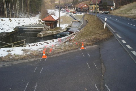 034 / Unterägeri: Selbstunfall eines Personenwagens endet im Fluss