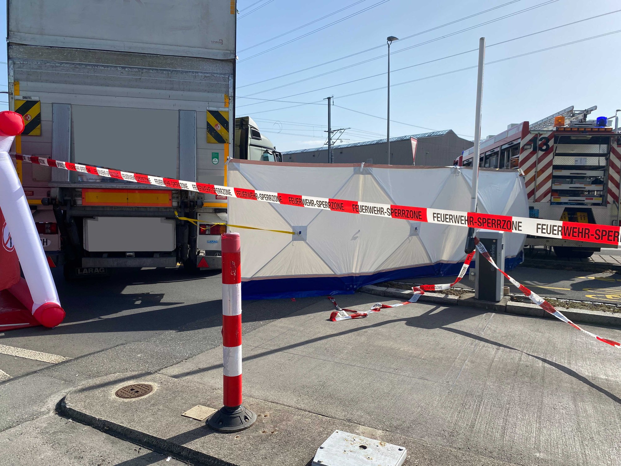 Während der Unfallaufnahme und der Spurensicherung war die Zufahrt ins Parkhaus des Einkaufscenters nicht möglich.