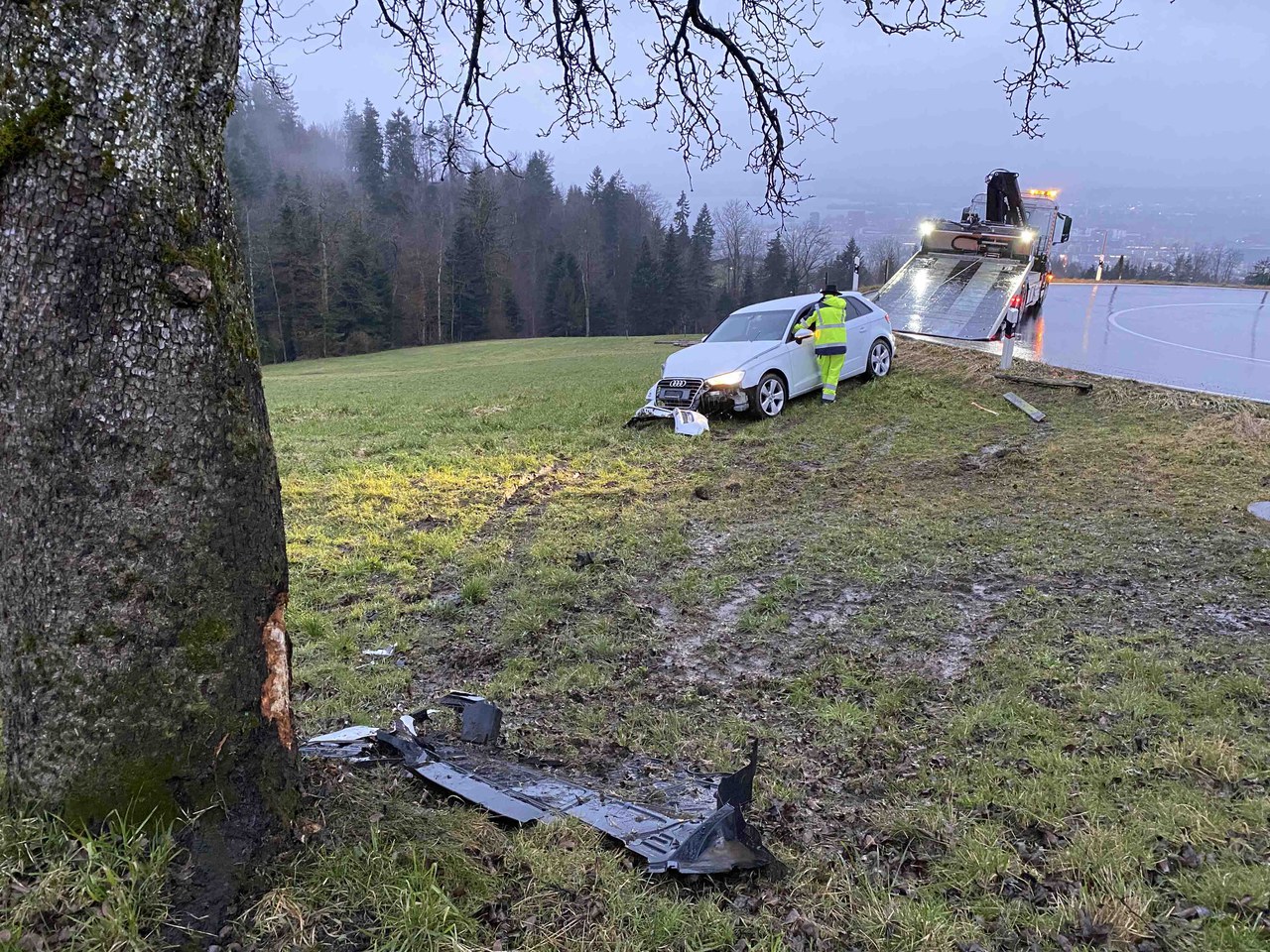 Am Freitagmorgen (11. Februar 2022), kurz vor 06:30 Uhr, hat eine Autolenkerin auf der Kantonsstrasse S in Richtung Allenwinden die Kontrolle über ihr Fahrzeug verloren. Dieses durchquerte eine Wiese und prallte in einen Baum. Die 25-jährige Frau verletzte sich bei dem Selbstunfall nur leicht. Ihr Auto wurde jedoch stark beschädigt. Es musste von einem privaten Abschleppunternehmen aus dem Wiesland gezogen und abtransportiert werden. Der Sachschaden beläuft sich auf rund 10'000 Franken.
