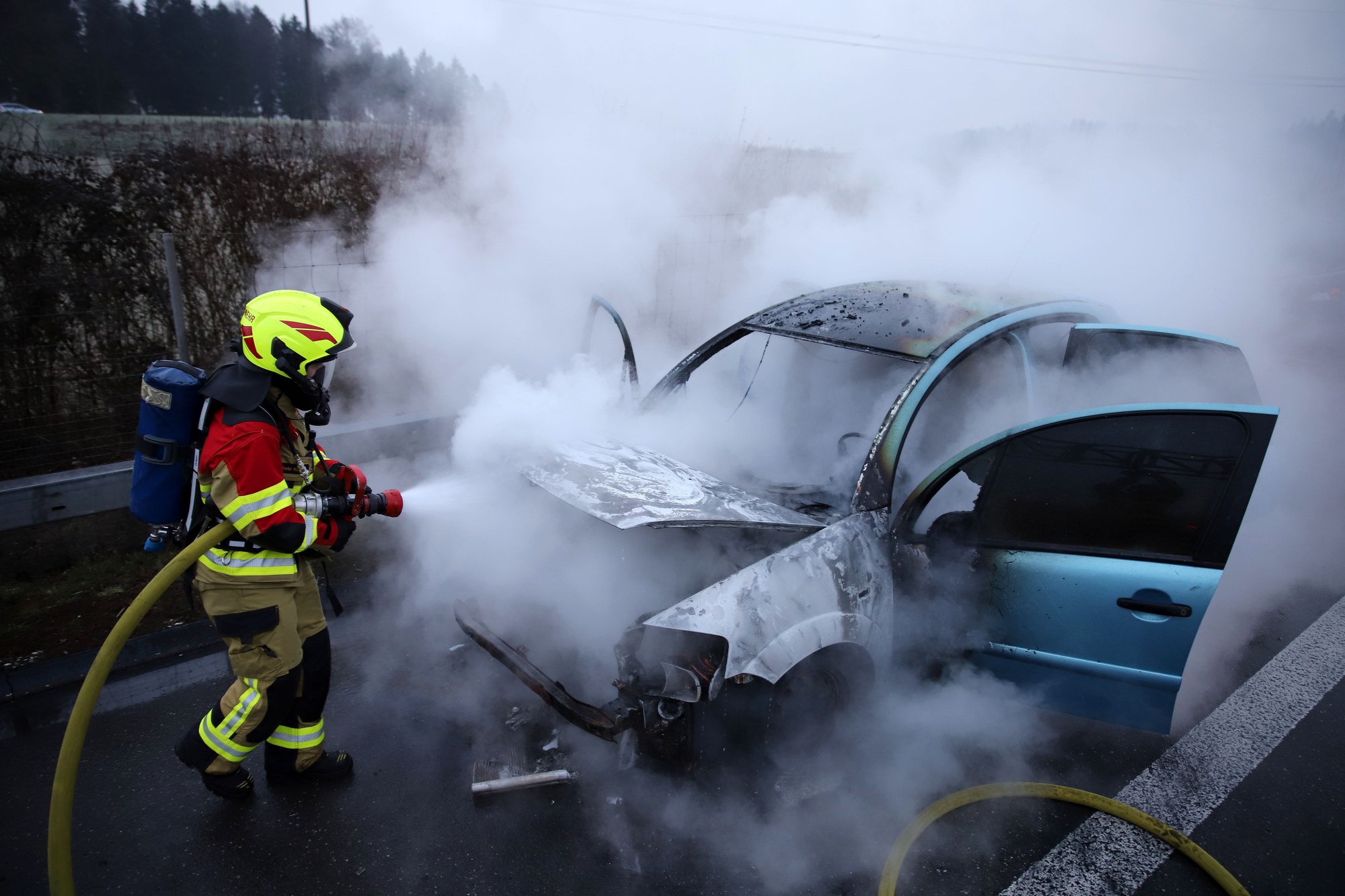 Während der Fahrt ist in einem Auto ein Feuer ausgebrochen. Verletzt wurde niemand, am Fahrzeug entstand Totalschaden. Im Vordergrund steht ein technischer Defekt.