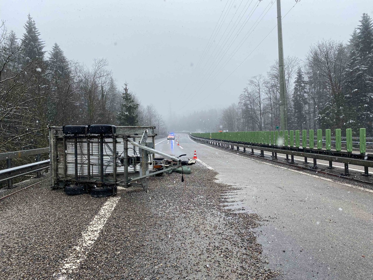 Baar: Anhänger kippt - Kies landet auf Autobahn