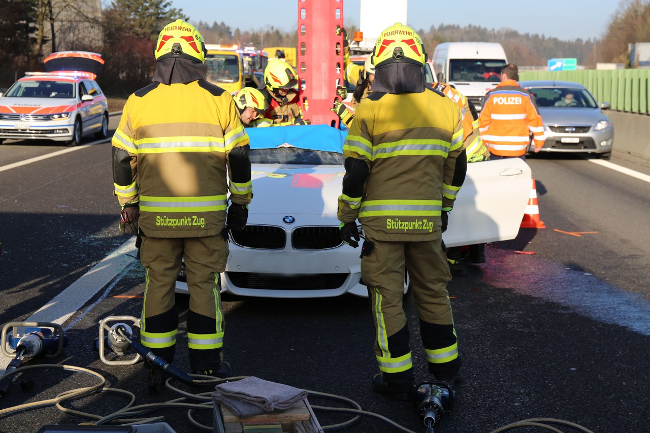 Am Donnerstag (21. Februar 2019), kurz vor 08.00 Uhr, kam es bei der Einfahrt Zug, Fahrtrichtung Baar, zu einem Unfall. Beim Auffahren auf die Autobahn staute sich der Verkehr plötzlich, worauf zwei Fahrzeuge kollidierten. Die Lenkerin des vorderen Autos erlitt durch den Aufprall erhebliche Verletzungen. Sie musste von Angehörigen der Stützpunktfeuerwehr Zug aus dem Auto geborgen werden. Der Rettungsdienst Zug überführte die 62-Jährige anschliessend ins Spital. Der 30-jährige Unfallverursacher blieb hingegen unverletzt.