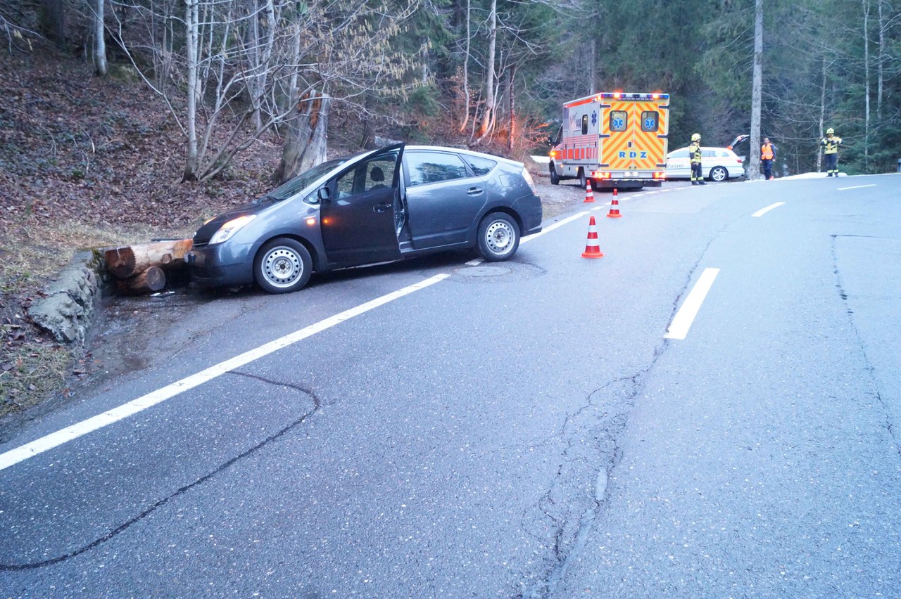Der Unfall ereignete sich am Samstagmorgen (9. März 2019), kurz vor 06:30 Uhr, auf der Ratenstrasse. Eine 31-jährige Autolenkerin fuhr vom Ratenpass kommend talwärts in Richtung Alosen. In einer Linkskurve kam sie von der Strasse ab und prallte in einen Holzbrunnen.