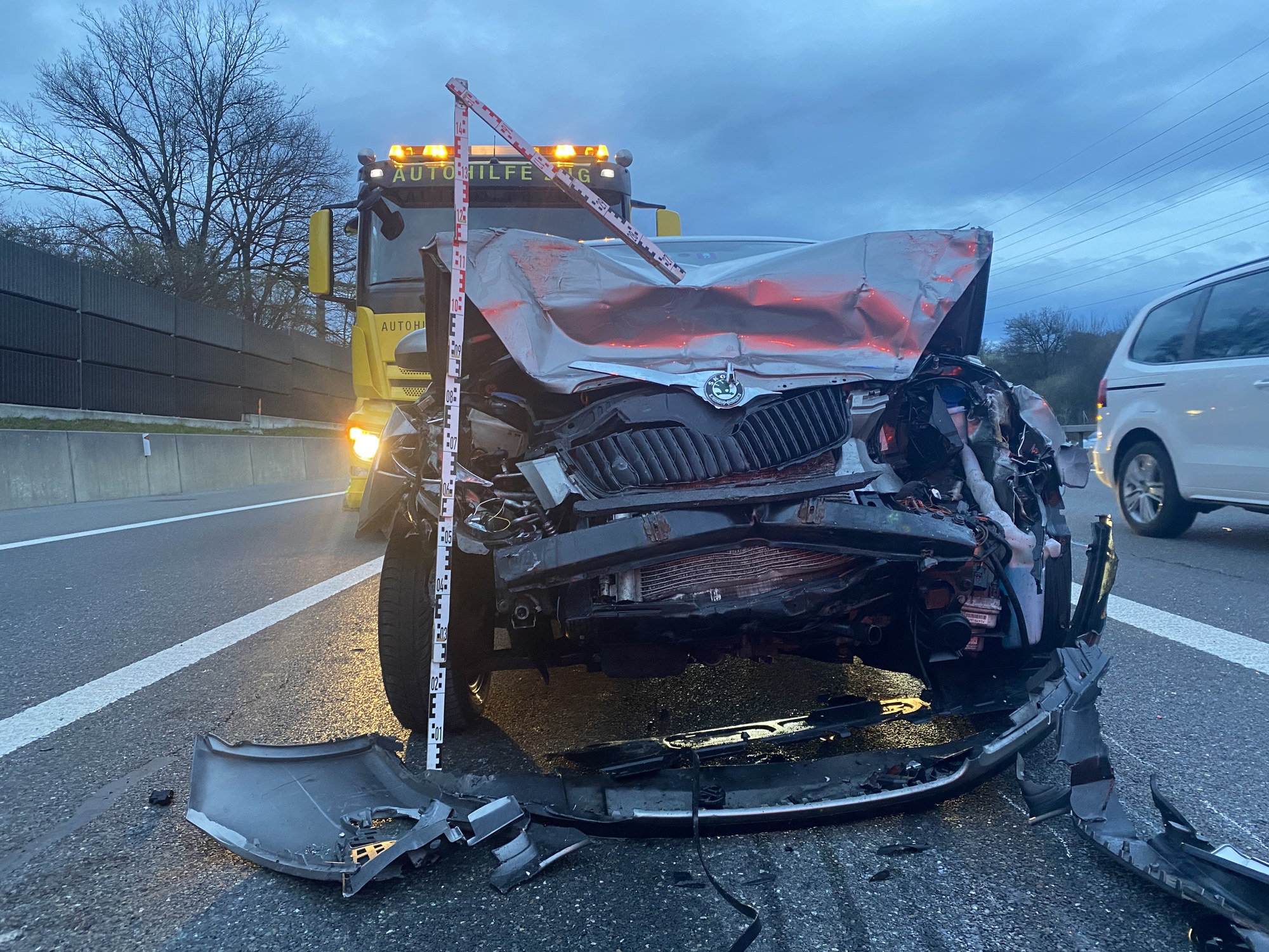 Zwei der drei Fahrzeuge mussten von einem privaten Abschleppunternehmen abtransportiert werden. Der Sachschaden beträgt rund 60'000 Franken. Als die Unfallstelle fast geräumt und gereinigt war, hatte ein Auto in diesem Bereich eine Panne und musste ebenfalls abgeschleppt werden. Dies führte zu einer weiteren Verzögerung, bis alle Fahrstreifen wieder für den Verkehr freigegeben werden konnten. Es kam im Feierabendverkehr zu Behinderungen.