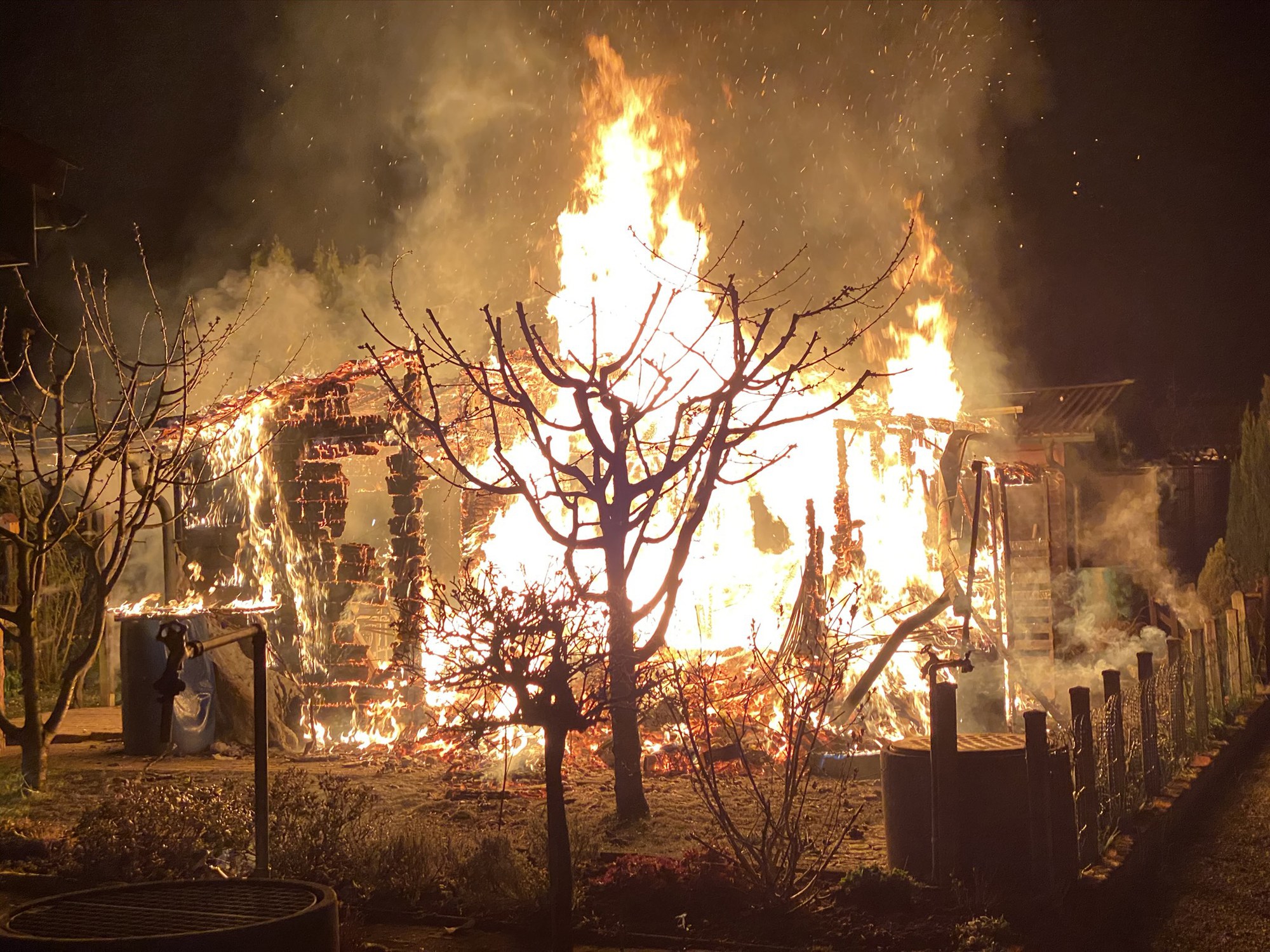 059 / Rotkreuz: Flammen zerstören Gartenhaus