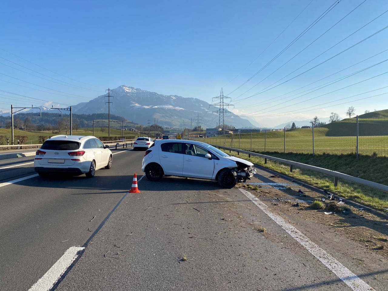 Vor einem Fussgängerstreifen ist es zu einer Auffahrkollision gekommen und auf der Autobahn ist ein Auto in die Leitplanke geprallt. Drei Personen wurden verletzt.