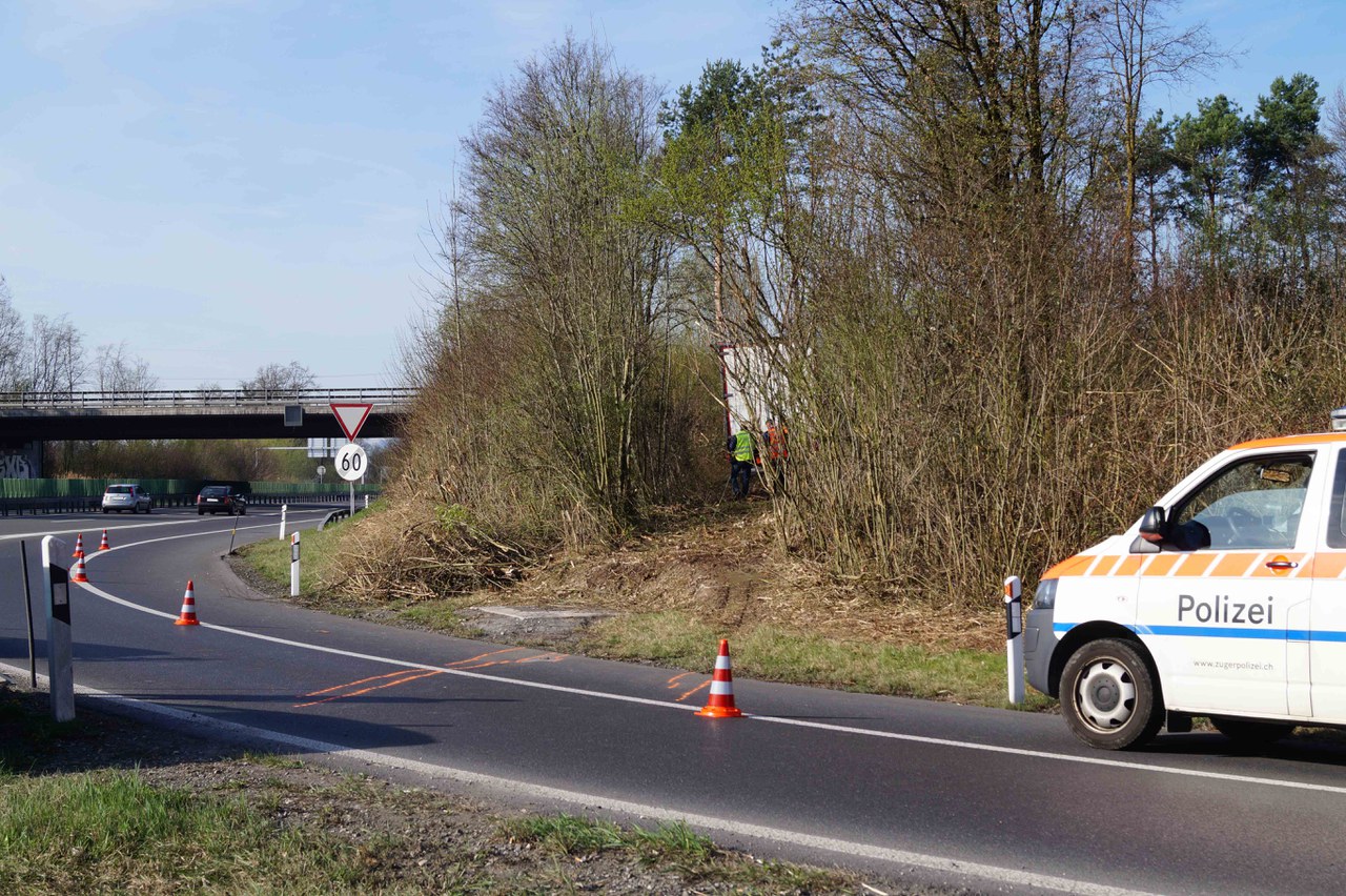 Während der Unfallaufnahme und der Bergung des Lastwagens musste die Autobahneinfahrt Baar gesperrt werden.