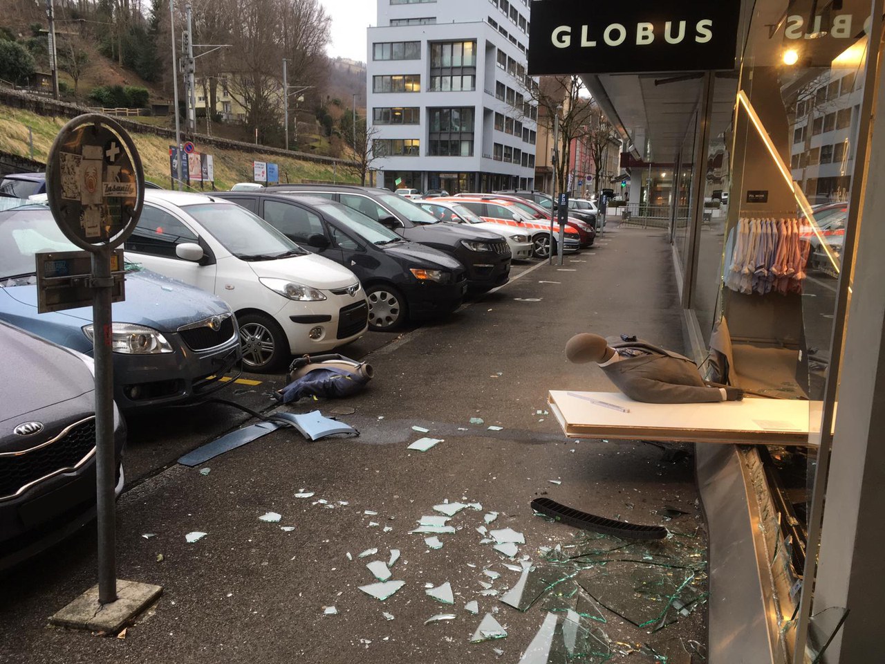 065 / Zug: Statt im Parkfeld im Schaufenster gelandet