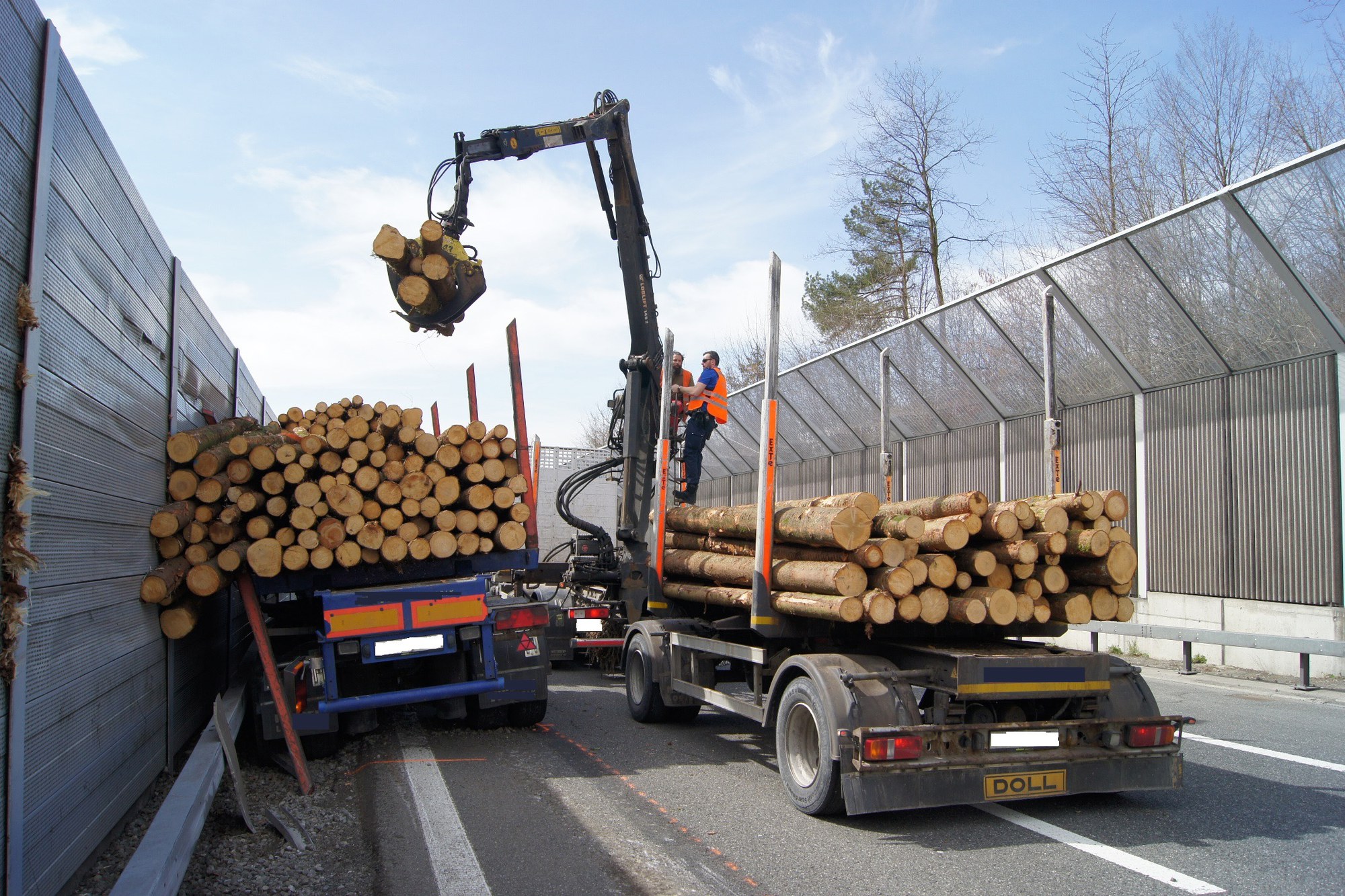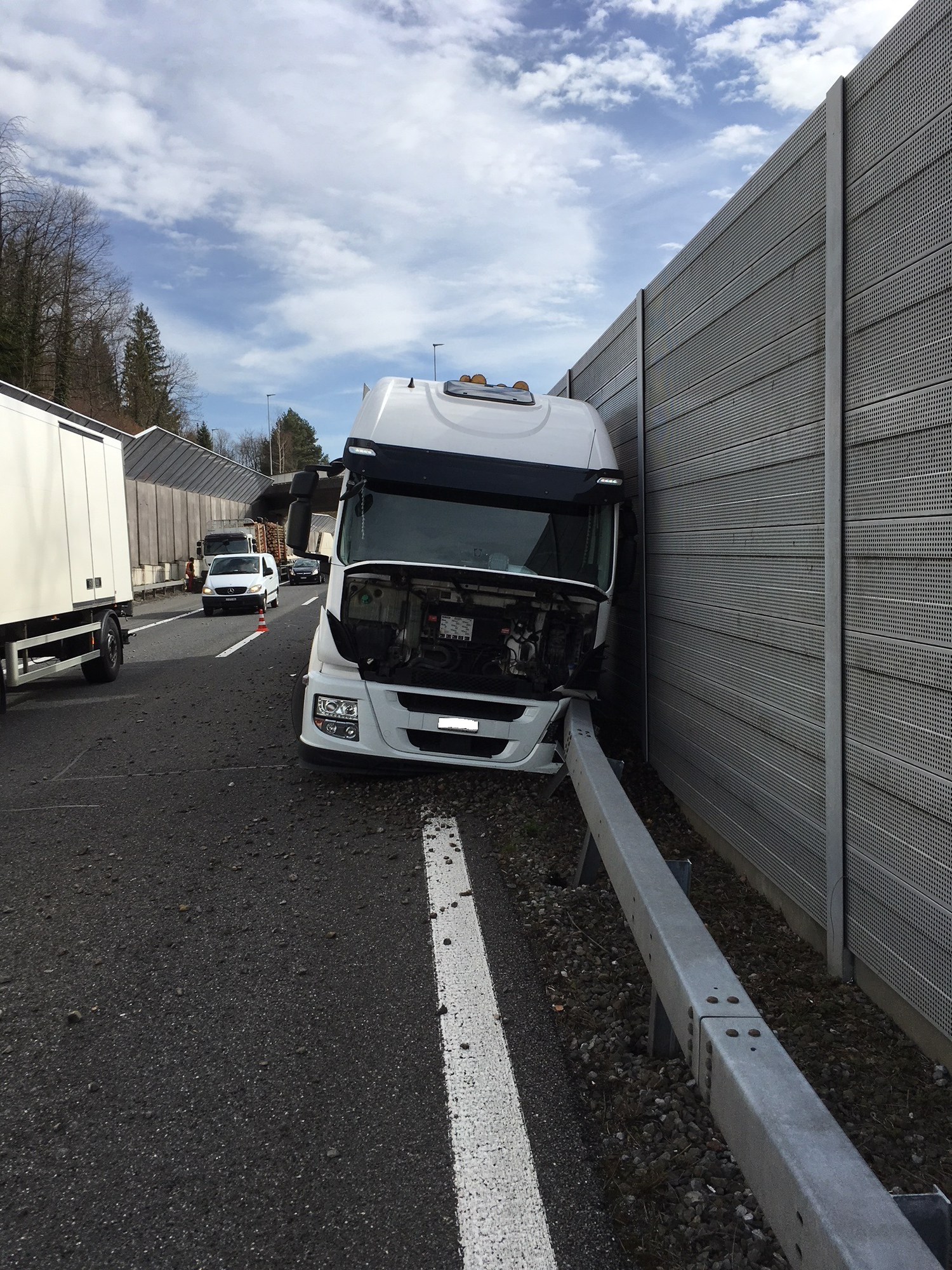 Am Dienstag (3. April 2018), kurz nach 10:15 Uhr, ist ein mit 25 Tonnen Holz beladener Lastwagen mit Aufleger, der auf der A4a in Richtung Baar fuhr, kurz vor der Ausfahrt Baar linksseitig in die Leiteinrichtung geprallt. Dabei beschädigte er auch die Lärmschutzwand auf rund 60 Metern. Weil der verunfallte Lastwagen verkeilt war und den Überholstreifen blockierte, musste dieser vorübergehend gesperrt werden. Dadurch kam es zu geringer Verkehrsbehinderung. Um den beschädigten Lastwagen bergen zu können, musste das Unternehmen die Holzladung auf einen anderen Sattelschlepper umladen. Dazu wurde auch der Normalstreifen kurzzeitig gesperrt und der Verkehr in dieser Zeit über den Pannenstreifen geführt.