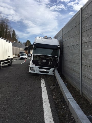 Nach ersten Erkenntnissen verlor der 31-jährige Lenker die Herrschaft über sein Fahrzeug wegen eines geplatzten Pneus an der Vorderachse. Am Lastwagen, den Leiteinrichtungen und der Lärmschutzwand entstand Sachschaden in der Höhe von rund 75'000 Franken.