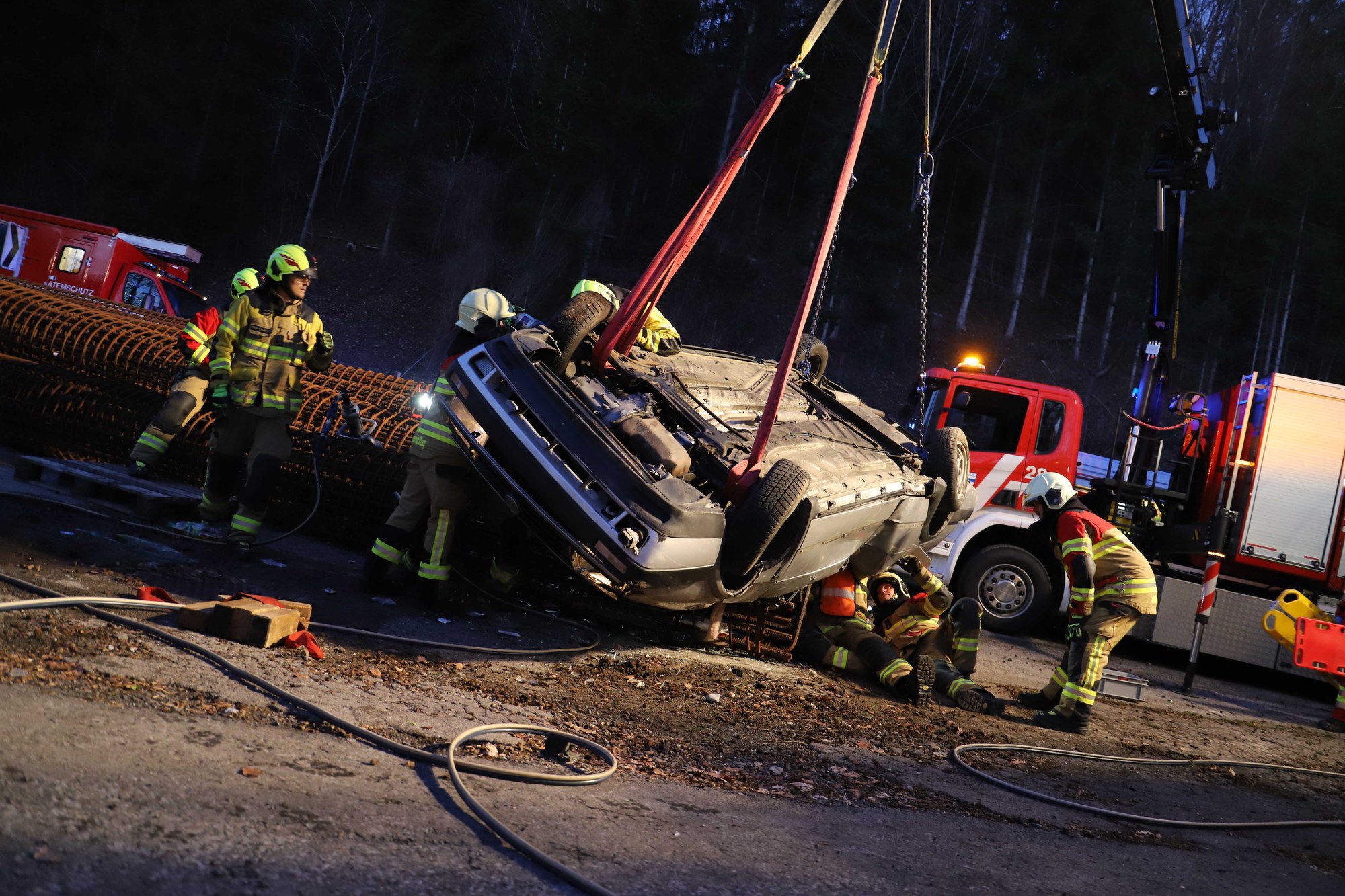 Ein Autofahrer ist auf der Kantonsstrasse von der Strasse abgekommen und auf dem Dach gelandet. Die Beifahrerin wurde lebensbedrohlich verletzt.