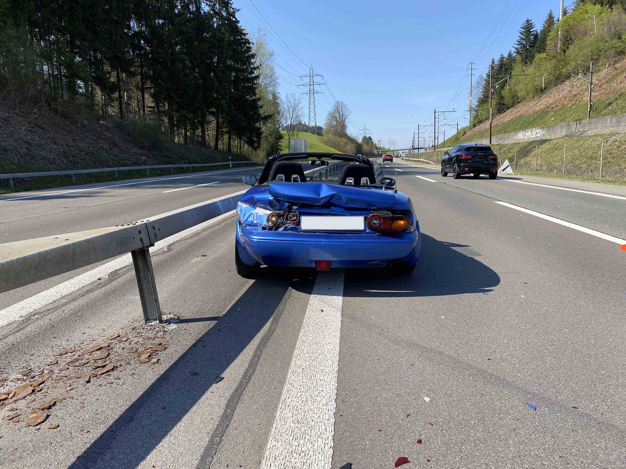 Das Auto erlitt Totalschaden und musste am Unfallort abgeschleppt werden. Auch die Leitplanke wurde leicht beschädigt.