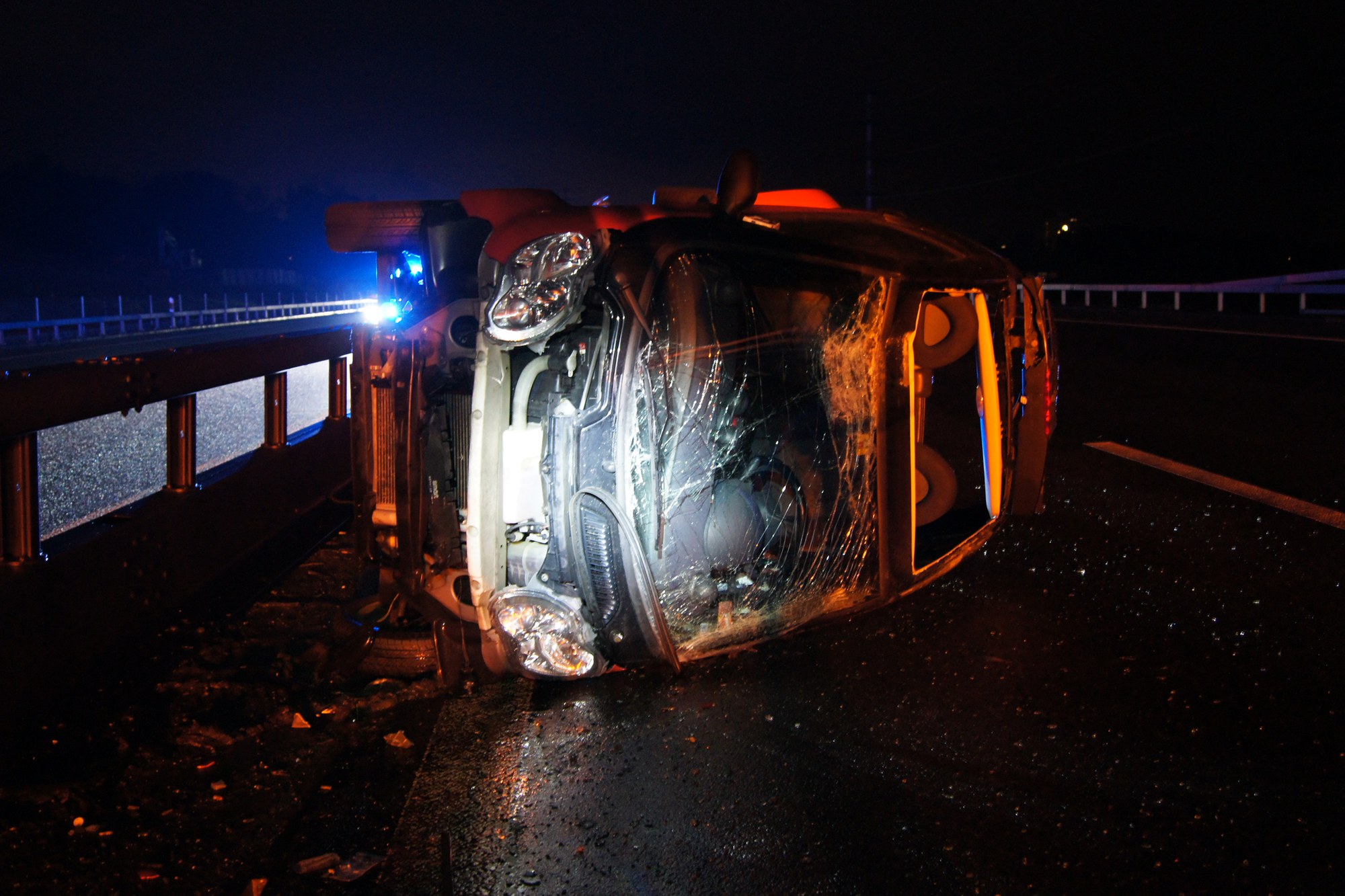 Ein Auto geriet auf der Autobahn ins Schleudern, kollidierte mit einem anderen Fahrzeug und kippte zur Seite. Die Insassen wurden leicht verletzt.