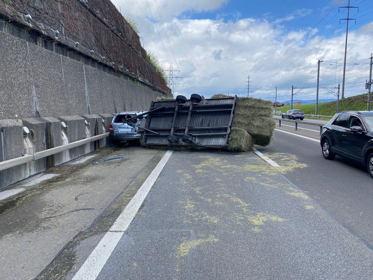 Risch Rotkreuz: Anhänger mit Heuballen auf Autobahn gekippt