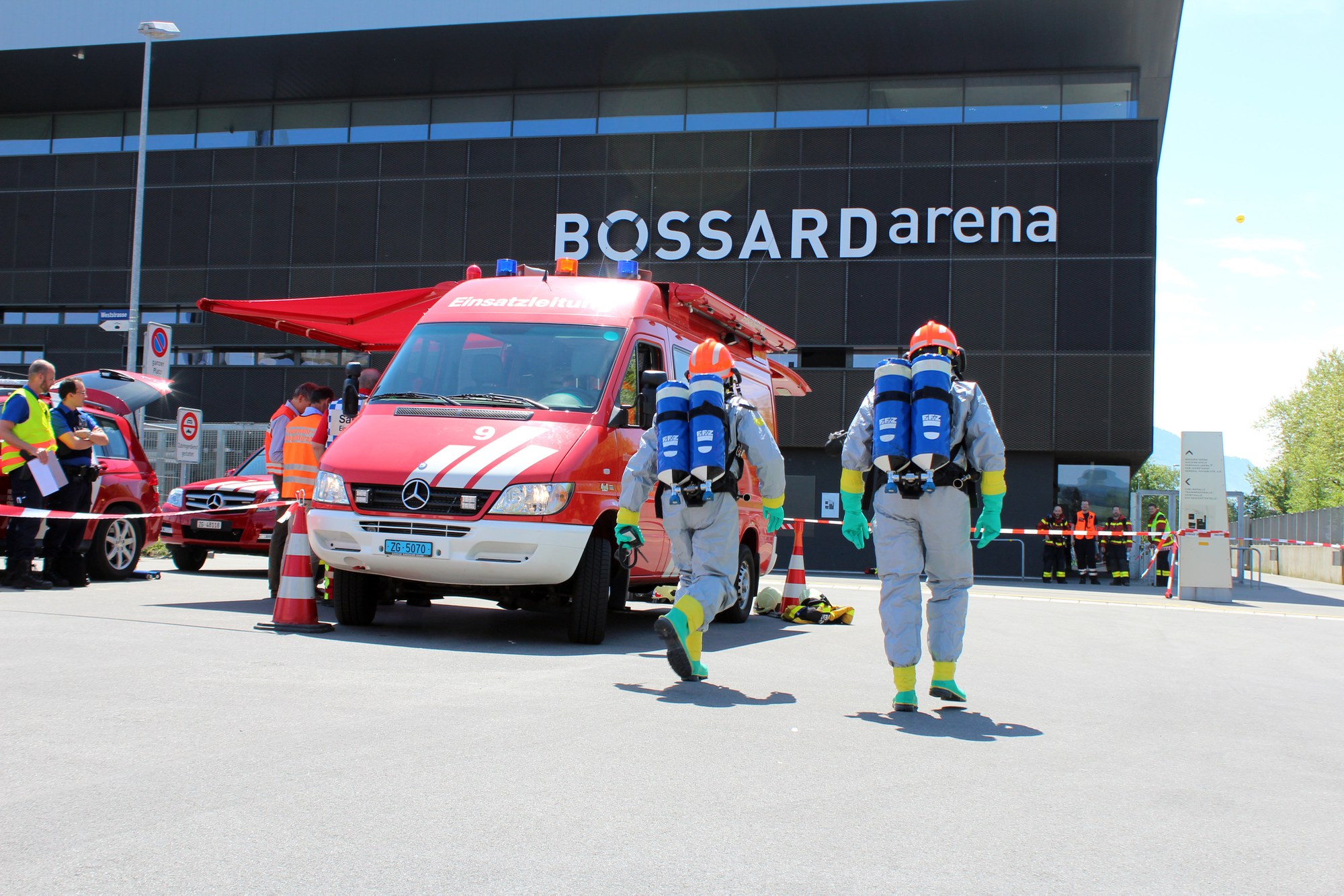 Am Freitag (8. Mai 2015), nach 12:15 Uhr, ging auf der Einsatzleitzentrale der Zuger Polizei die Meldung ein, dass im Maschinenraum des Eisstadions Ammoniak austrete. Von der Freiwilligen Feuerwehr Zug FFZ rückten umgehend die Spezialisten der Chemiewehr aus. Sie evakuierten vorsorglich etwa rund ein Dutzend Personen aus dem Eisstadion und nahmen Messungen vor. Anschliessend drangen sie ins Gebäude vor, um das Leck zu lokalisieren.