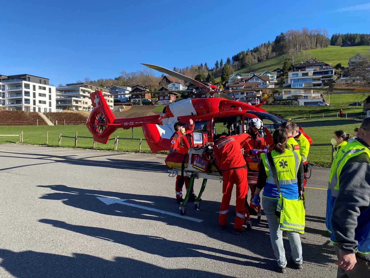 Bis zum Eintreffen der ersten Rettungskräfte wurde der Verunfallte von mehreren «First Responders» betreut. Dem Rettungsdienst Zug sowie dem Notarzt ist es schliesslich gelungen, den Mann zu stabilisieren. Nach der medizinischen Erstversorgung wurde der 26-Jährige mit der Rega in ein ausserkantonales Spital geflogen.