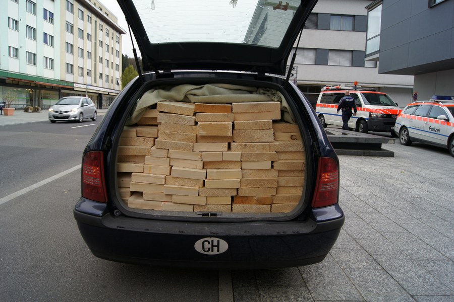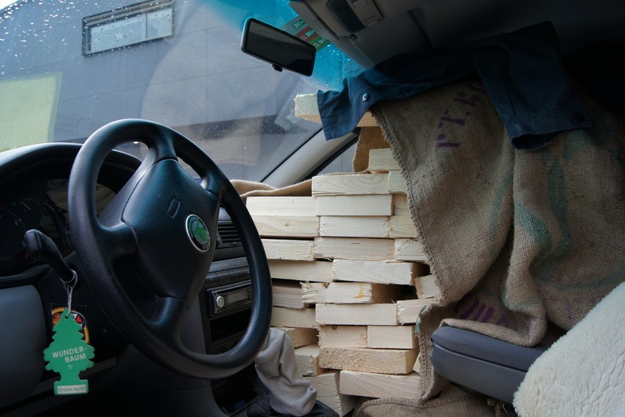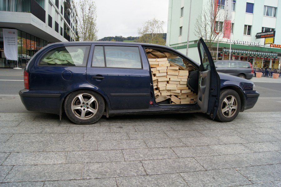 Kurz nach 18:00 Uhr fiel einem sich auf dem Heimweg befinden Zuger Polizisten ein auf dem Trottoir an der Luzernerstrasse in Rotkreuz abgestelltes Auto auf. Dem Polizeiangehörigen stach weniger der nicht optimal gewählte Parkplatz ins Auge als vielmehr die Ladung des Fahrzeuges. Im Innern waren bis unters Dach Holzscheite gestapelt - selbst auf dem Beifahrersitz türmten sich die Holzbeigen. Das Ladegut versperrte dem Lenker nicht nur die Sicht nach rechts, es war auch kaum gesichert.