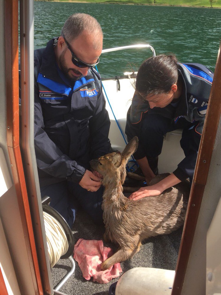 Am Montagnachmittag (30. April 2018) absolvierten die Mitglieder der Gewässerpolizei und Umwelt auf dem Ägerisee eine Einsatzübung. Gegen Ende der Übung wurden sie im Bootshafen Oberägeri von einem Knaben darauf aufmerksam gemacht, dass sich ein Reh im Wasser befindet. Die Einsatzkräfte begaben sich umgehend mit dem Patrouillenboot «BELLA» auf die Suche und sichteten das Tier wenig später, weit weg vom rettenden Ufer.